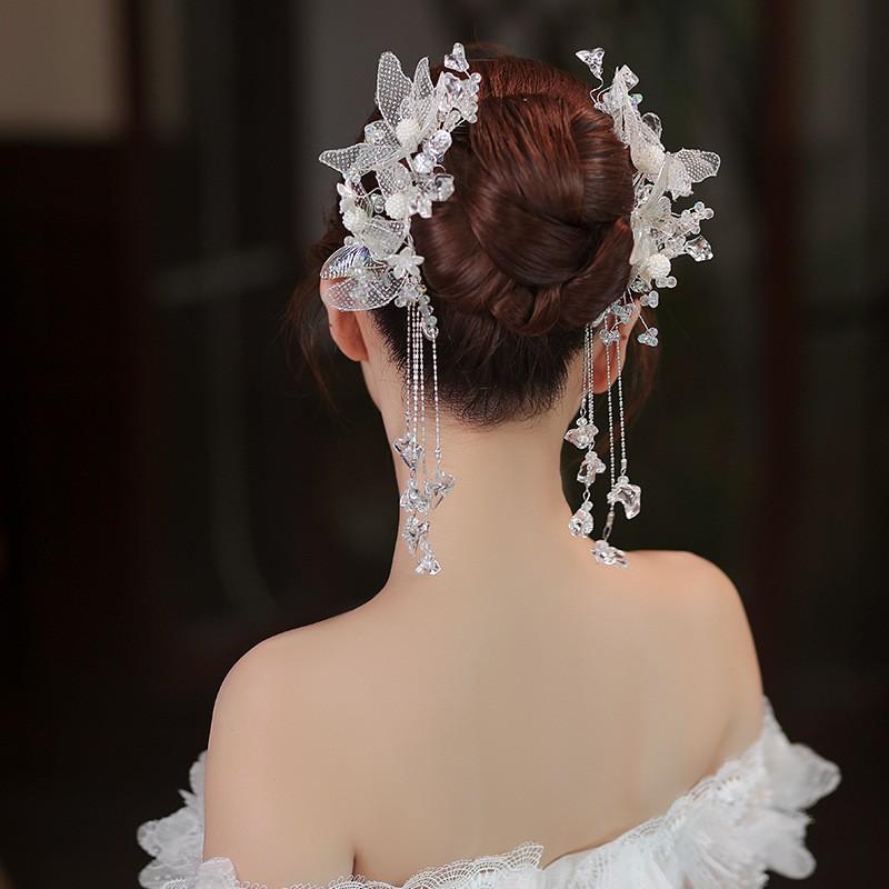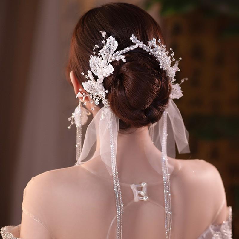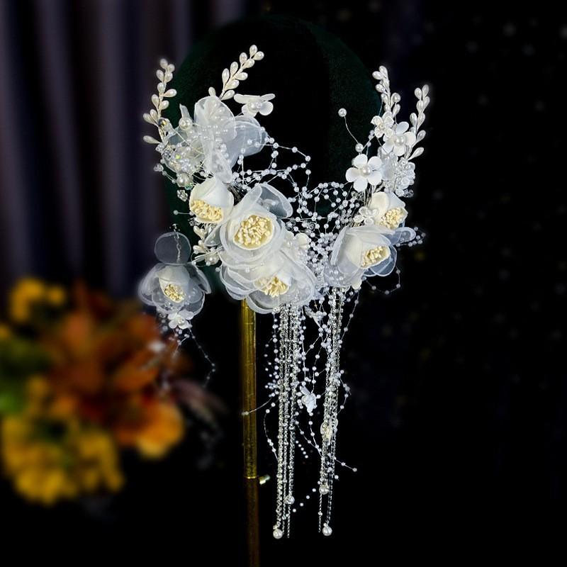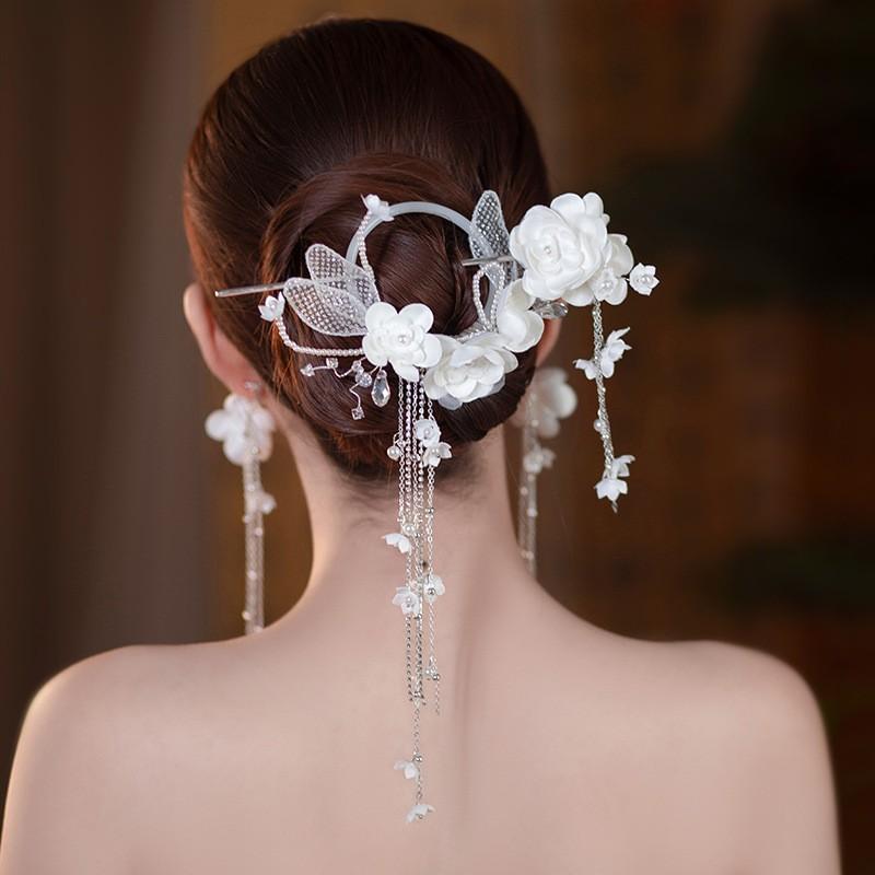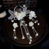 Nuevo tocado de novia Super Fairy Sweet Hairpin Juanant Yarn White Flower Bud Butt Wedding Style Hair Accessories Long Tassel