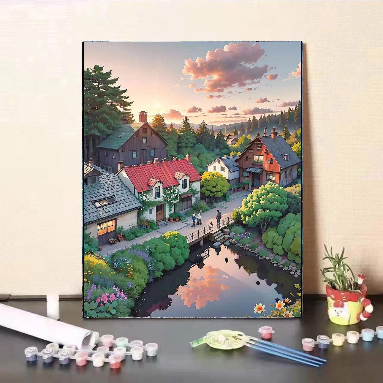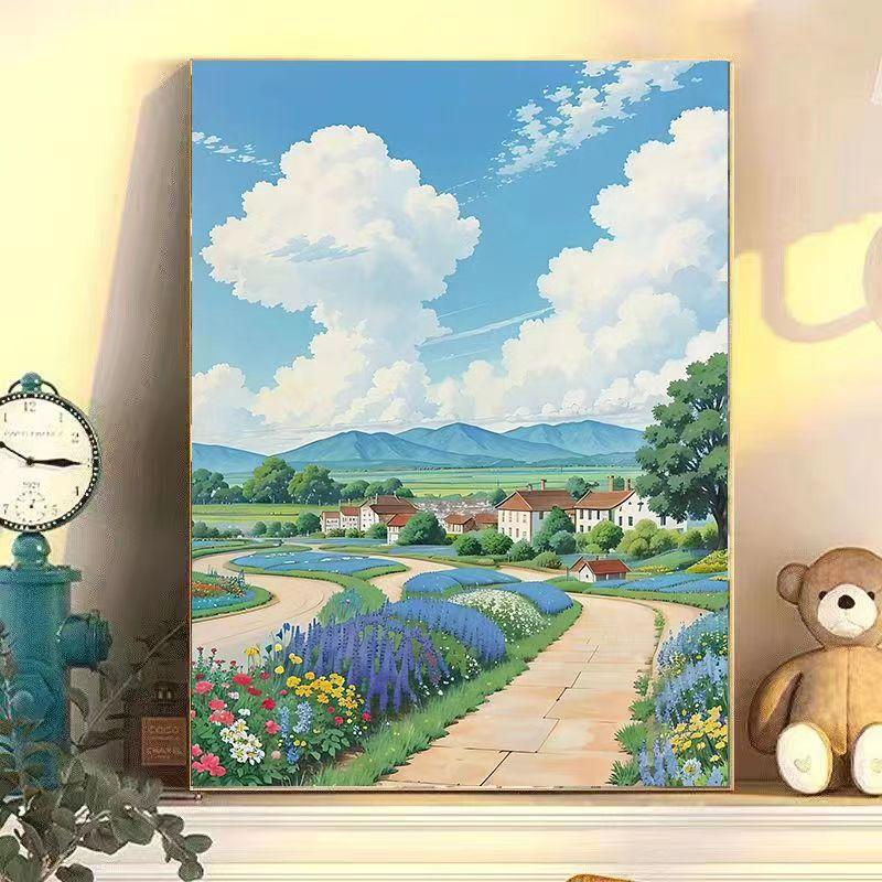 Hayao Miyazaki patio ideal Cielo Pintura al óleo digital diy hecho a mano relleno de color curativo descompresión de aspecto alto regalo de cumpleaños