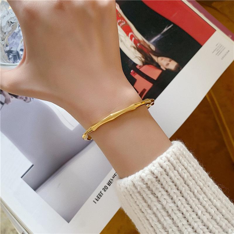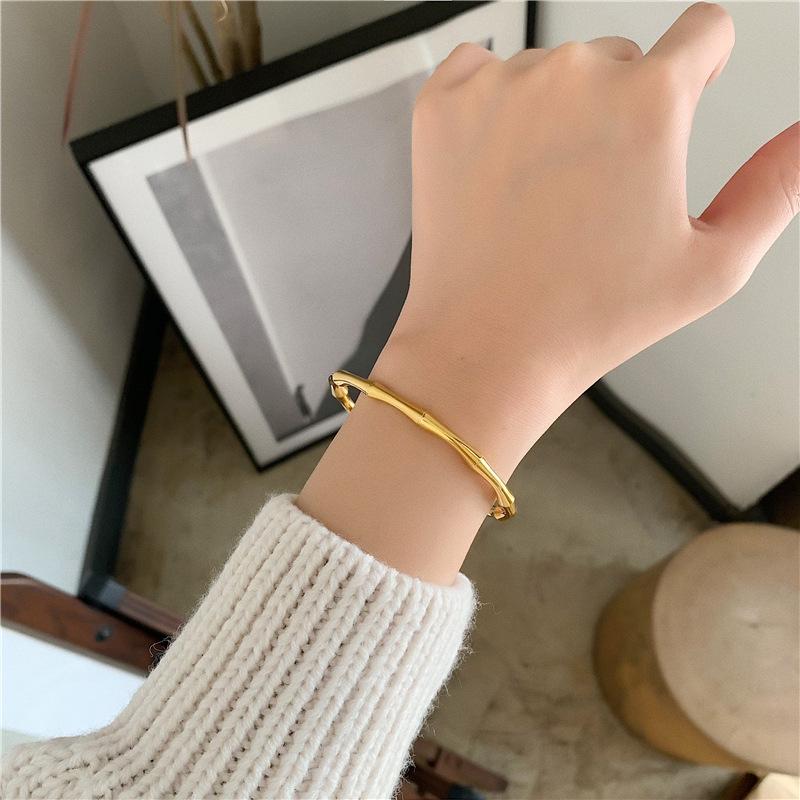Pulsera simple de moda de acero de titanio chapado en oro de 18 quilates con viento frío ins europeo y americano para mujer, pulsera geométrica de personalidad al por mayor