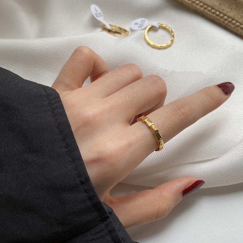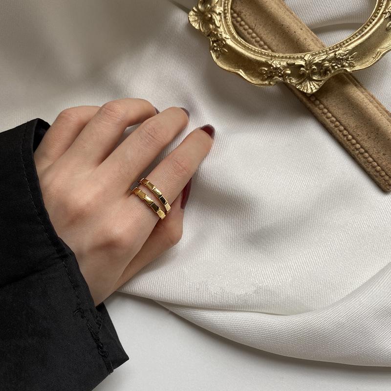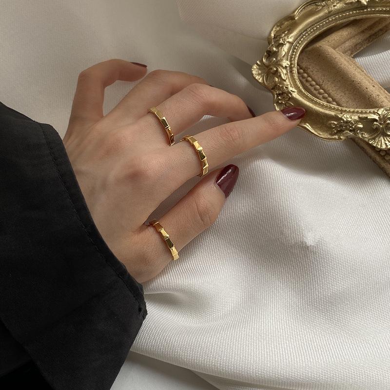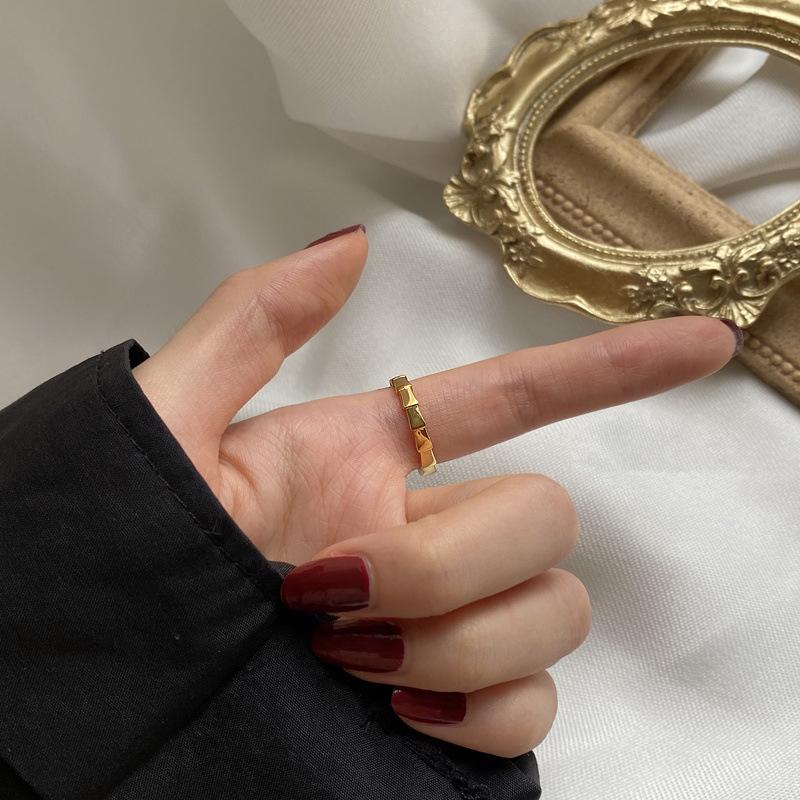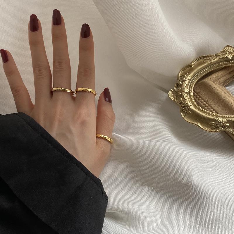 Anillo de acero de titanio dorado elegante de moda ins simple para celebridades de Internet europeas y americanas, joyería femenina versátil