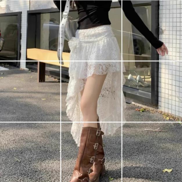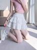 Falda de encaje irregular para mujer, de verano, de cintura alta, corte A, corta, antiluz, 5263
