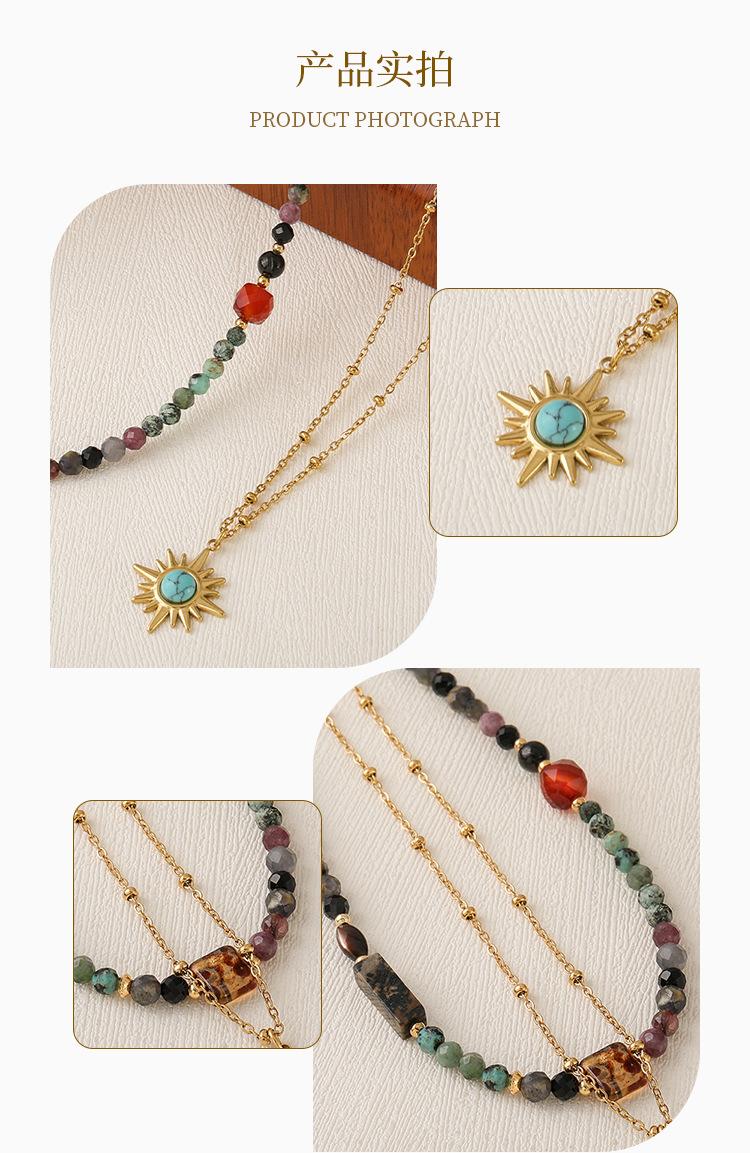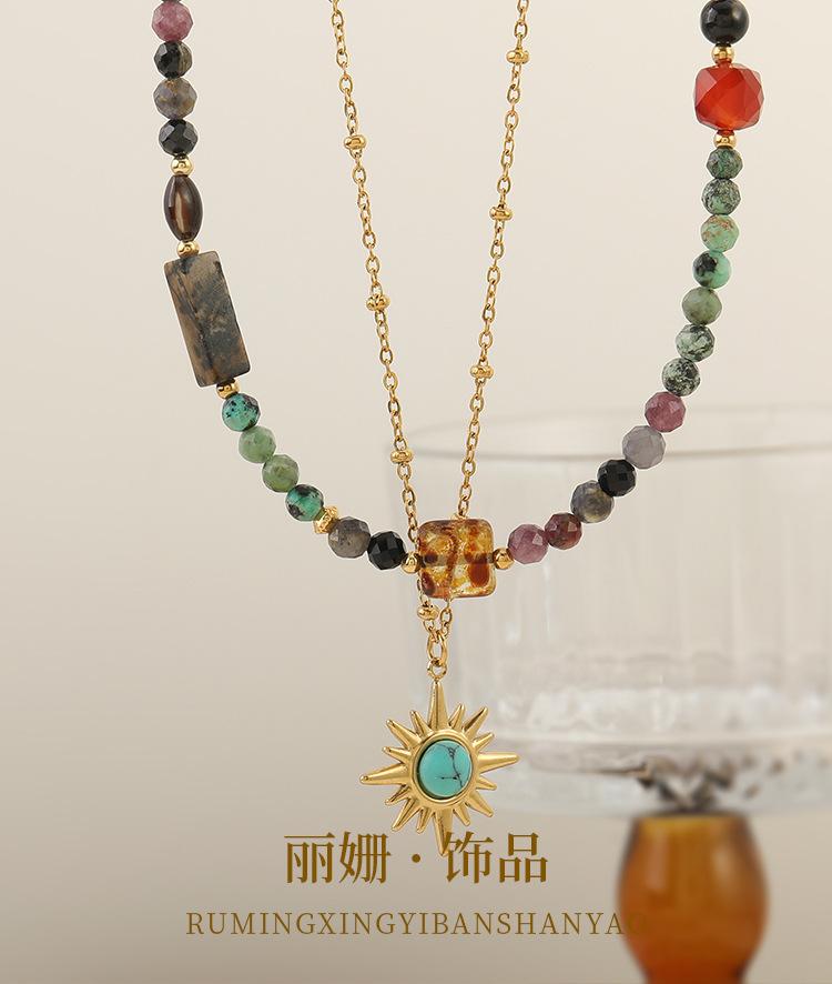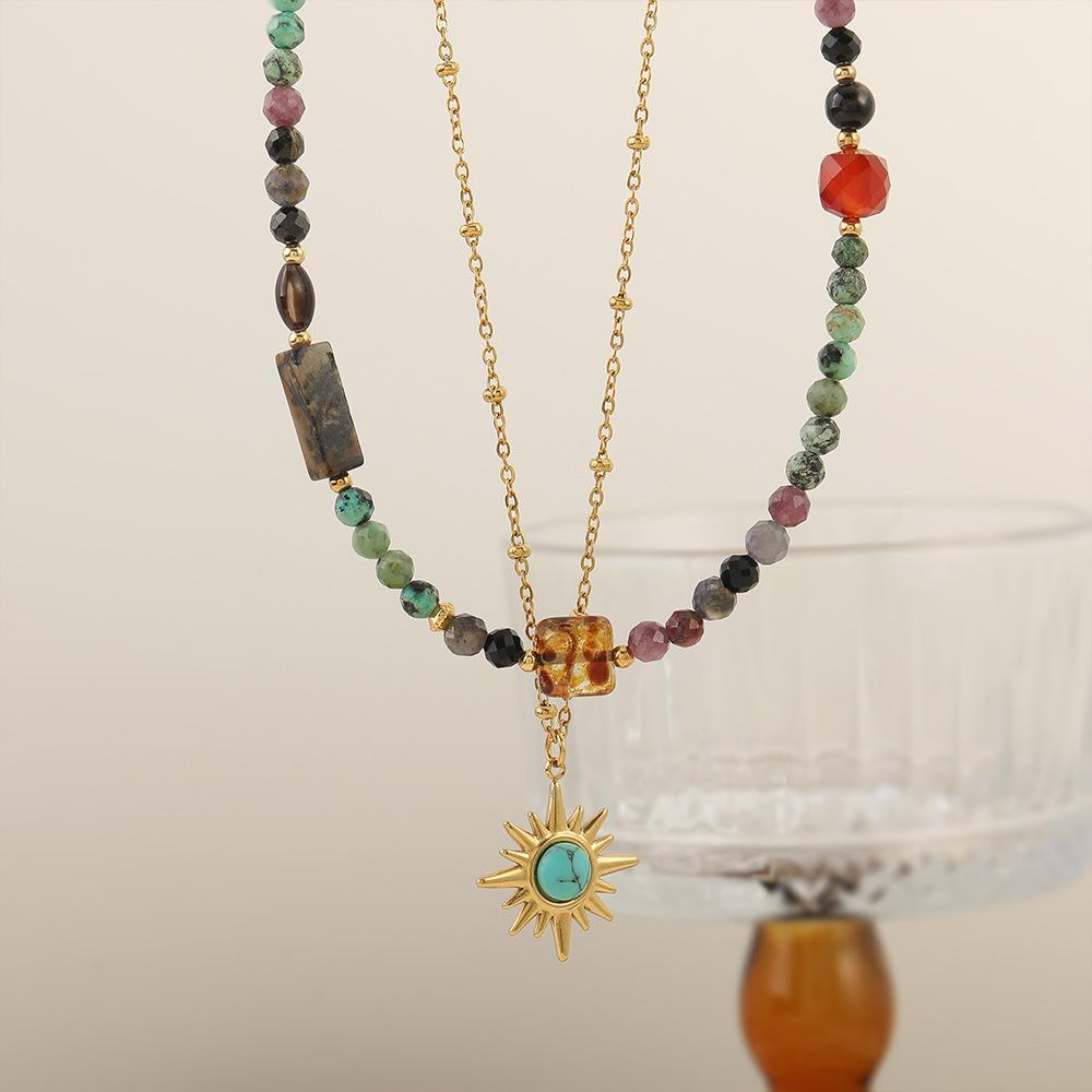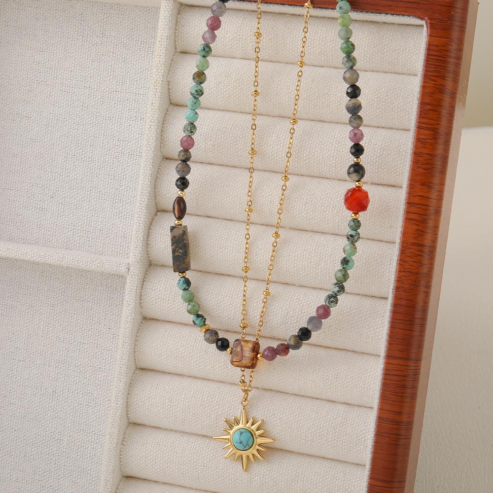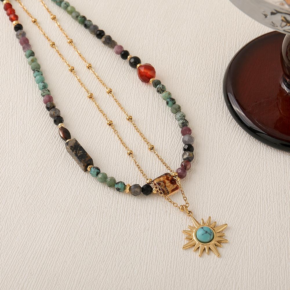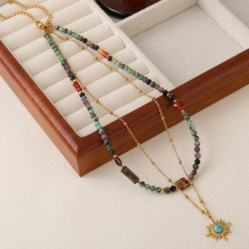 Collar de cuentas de turquesa africana de doble capa con diseño transfronterizo, estilo vintage, personalizado, combinable con todo, de alta calidad.