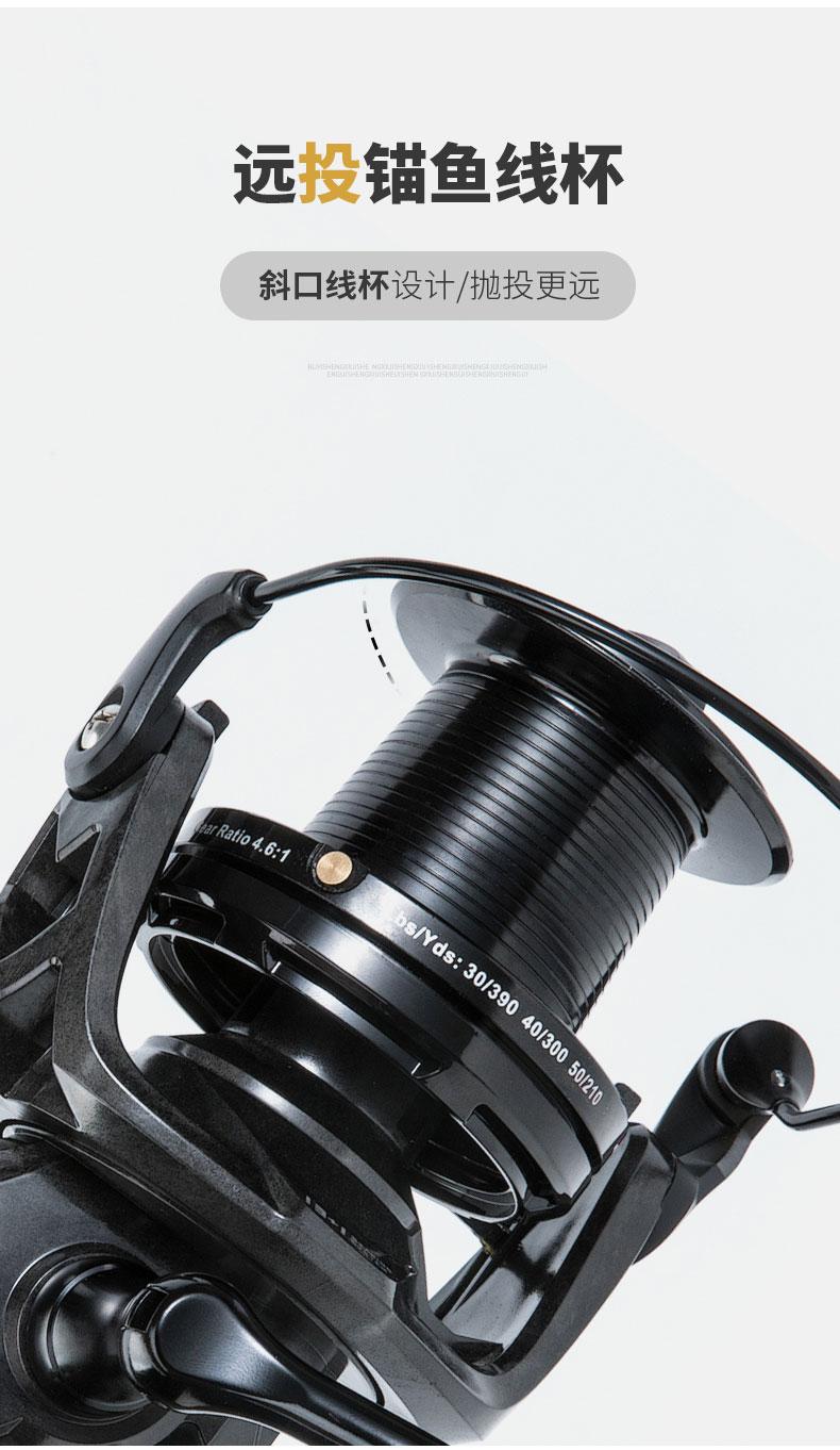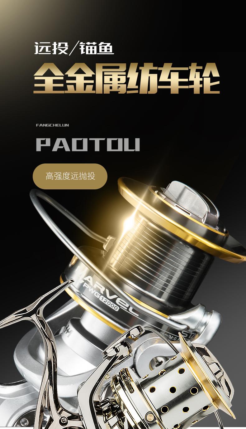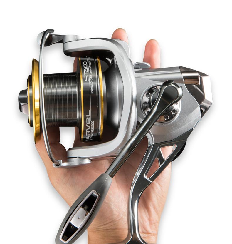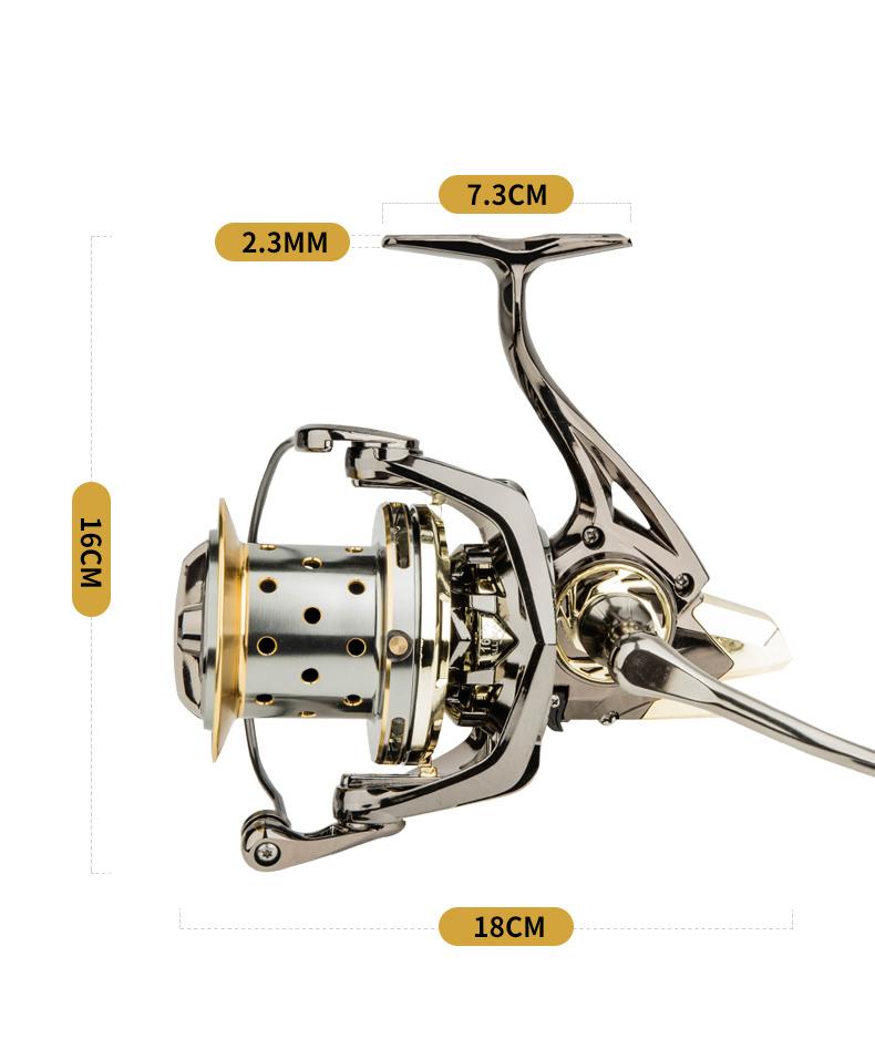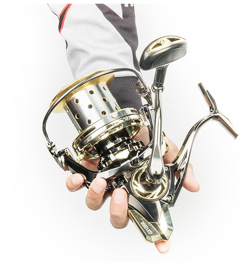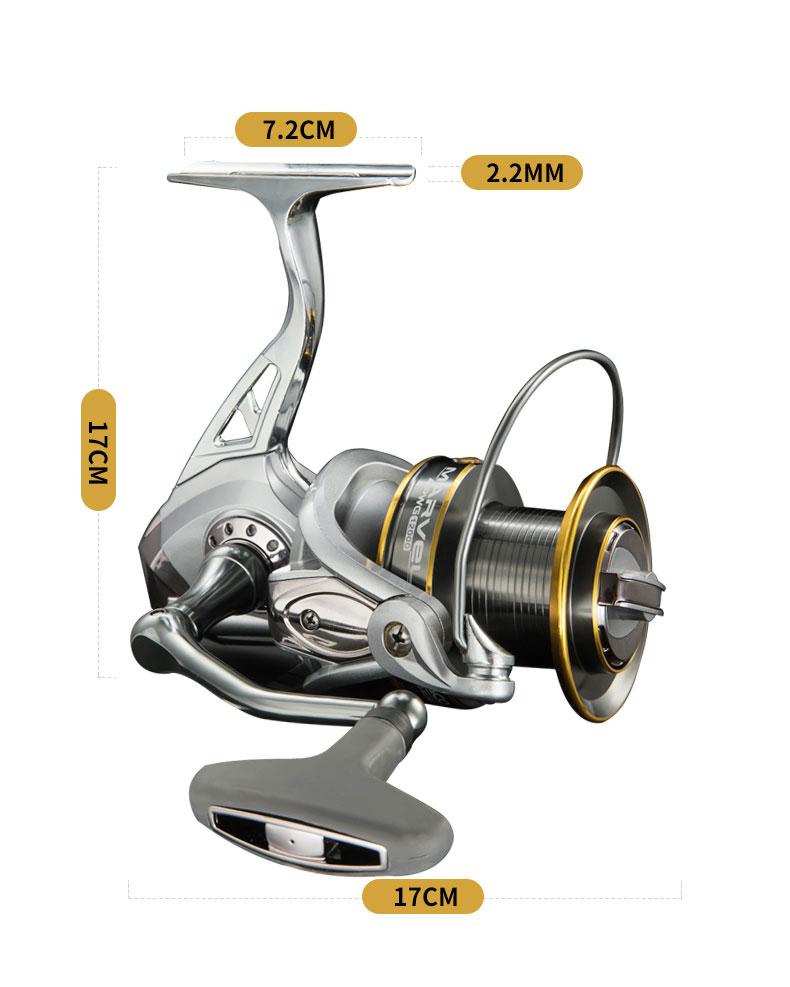 Rueda giratoria de largo alcance totalmente metálica sin espacio, rueda de pesca con ancla oblicua, caña de pescar, caña de pescar tipo 10000, carrete de pesca