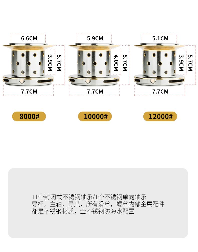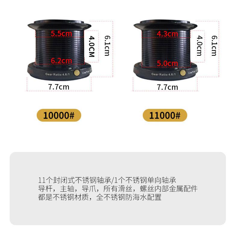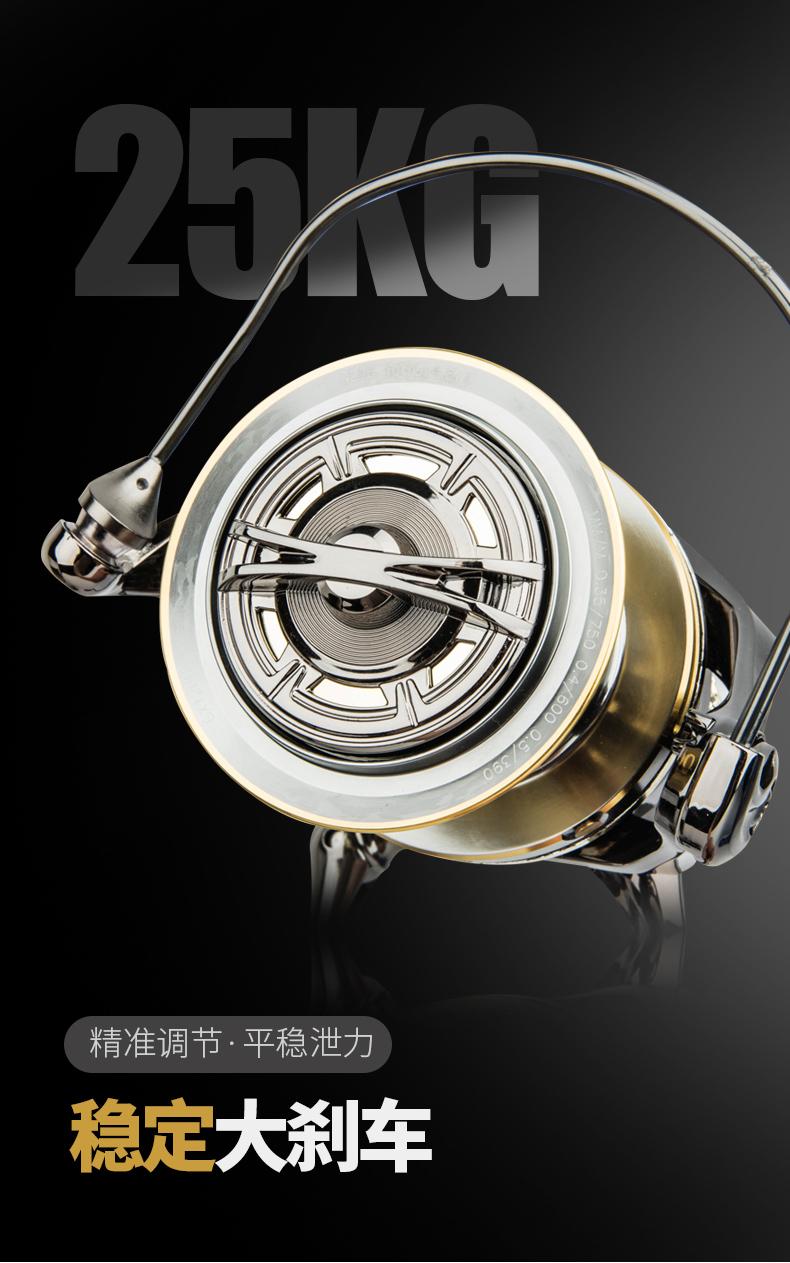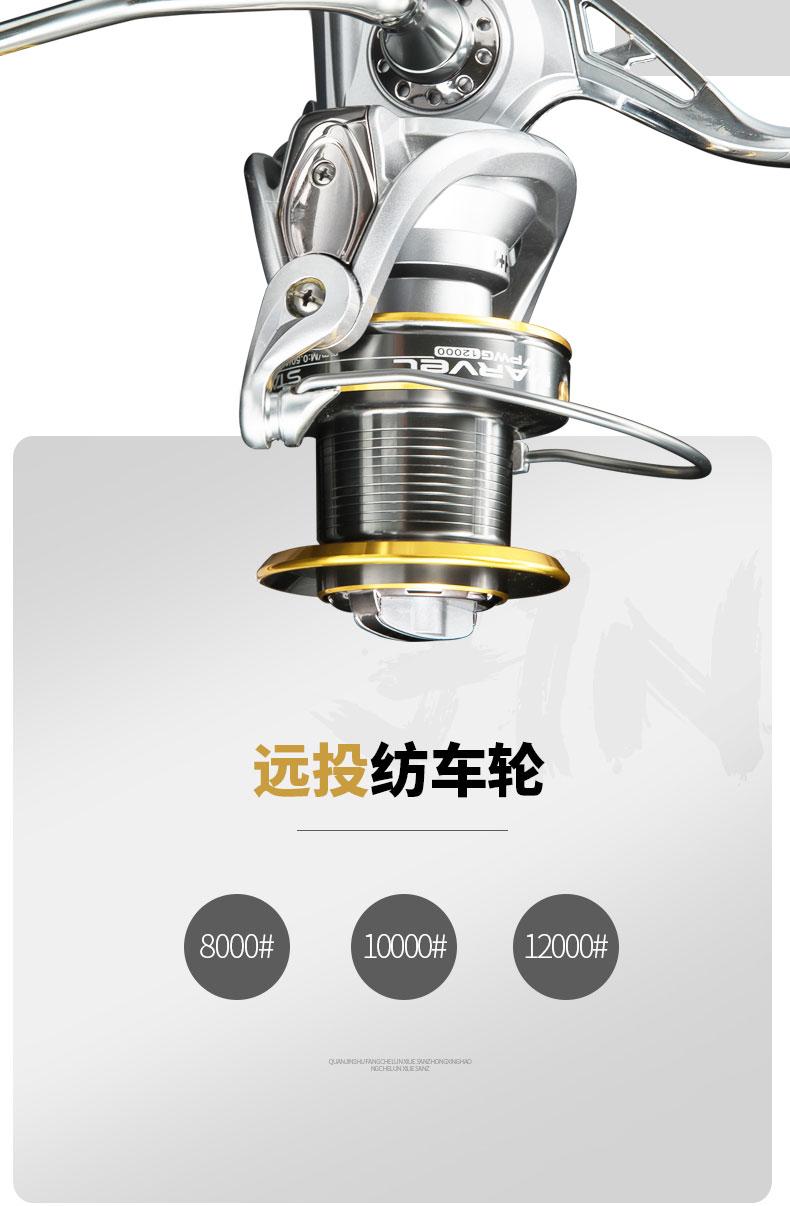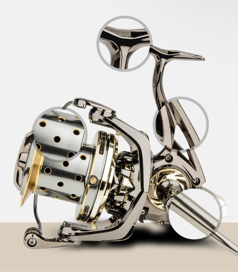Rueda giratoria de largo alcance totalmente metálica sin espacio, rueda de pesca con ancla oblicua, caña de pescar, caña de pescar tipo 10000, carrete de pesca
