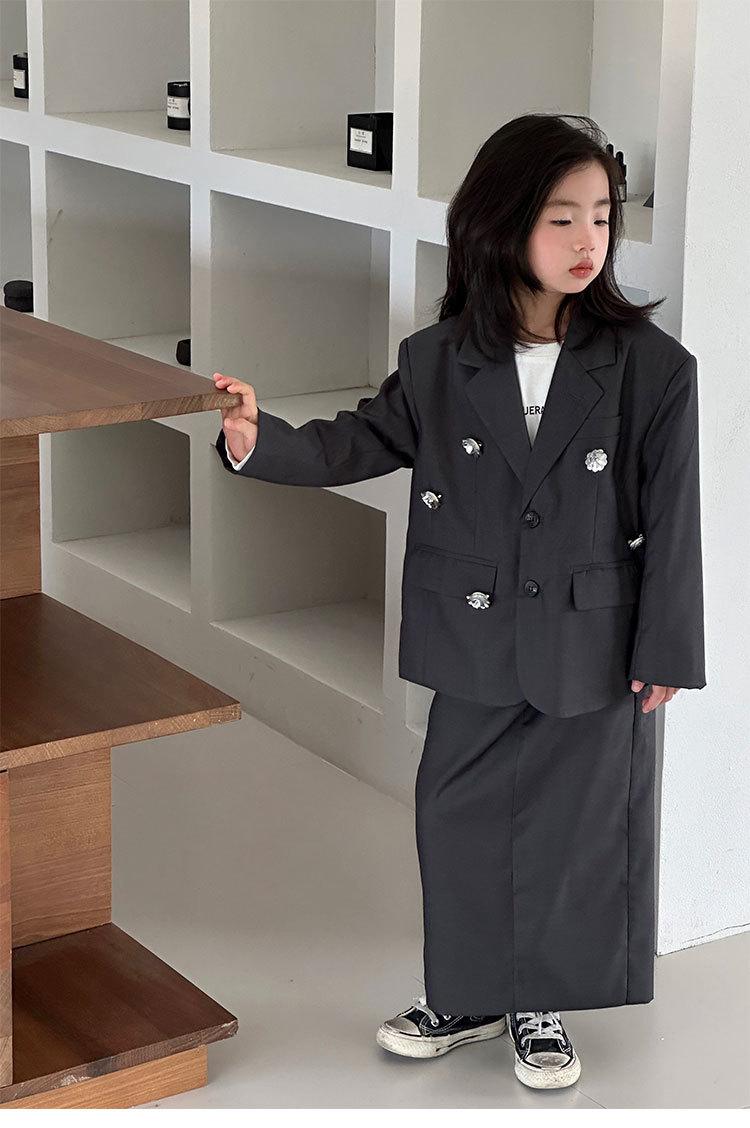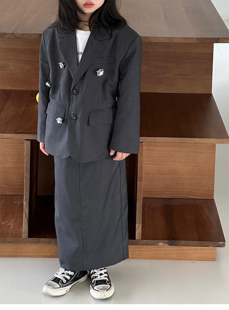 Black suit and skirt (excluding corsage), Gray suit skirt (excluding corsage), Sequin flower of the same acces...