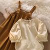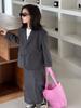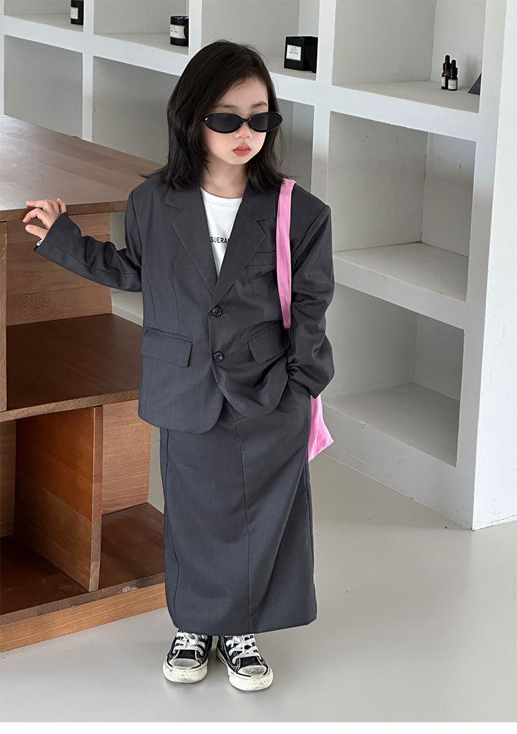 Traje de Falda para Mujer 2025 Otoño Nuevo Estilo Coreano Gris Top Holgado Falda Larga Set de 2 Piezas Dropshipping