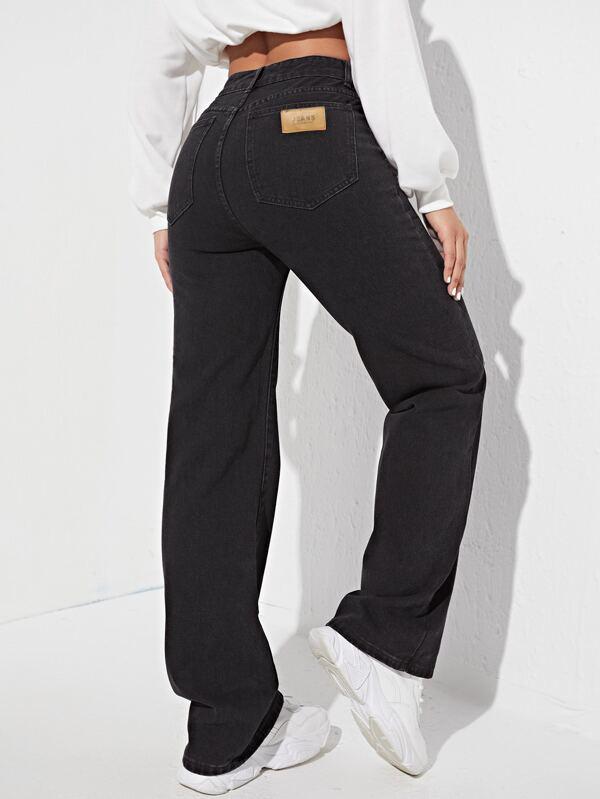 Jeans Negros Europeos y Americanos para Mujer, Nuevos Pantalones Rectos de Calle Casuales y Personalizados de Venta Caliente, Jeans Lavados de Cintura Alta