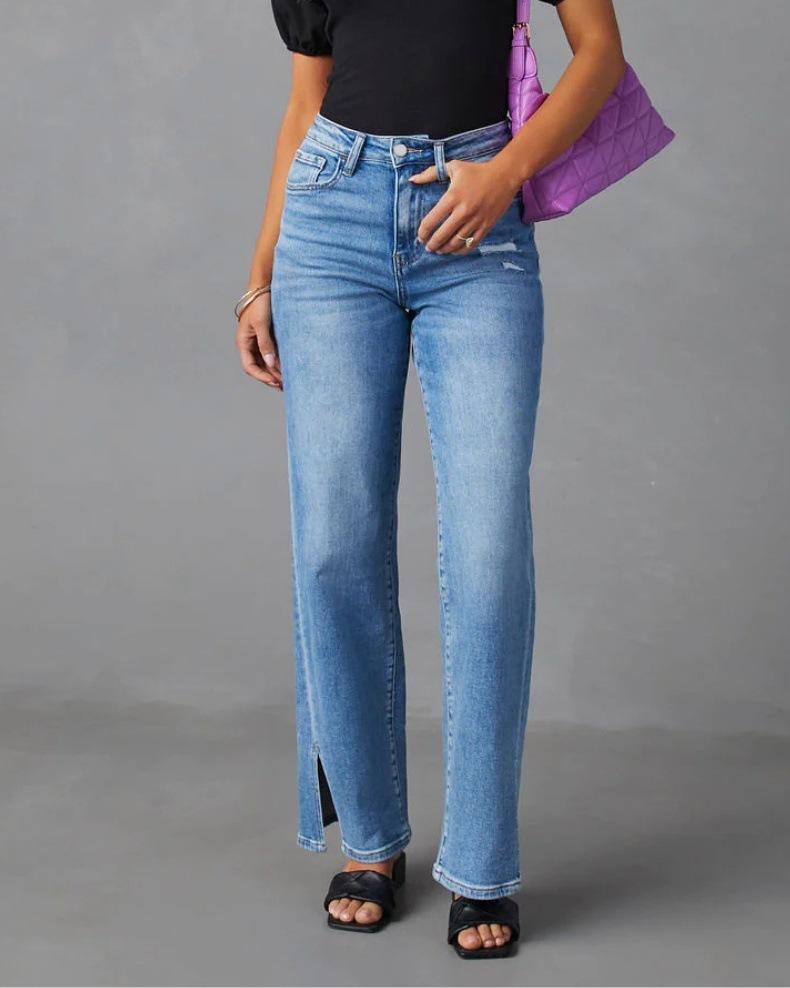 Amazon Jeans con Abertura para Mujer 2025 Nuevo Stretch Lavado Pantalones de Pierna Ancha Temperamento Para Ir al Trabajo Jeans de Cintura Alta