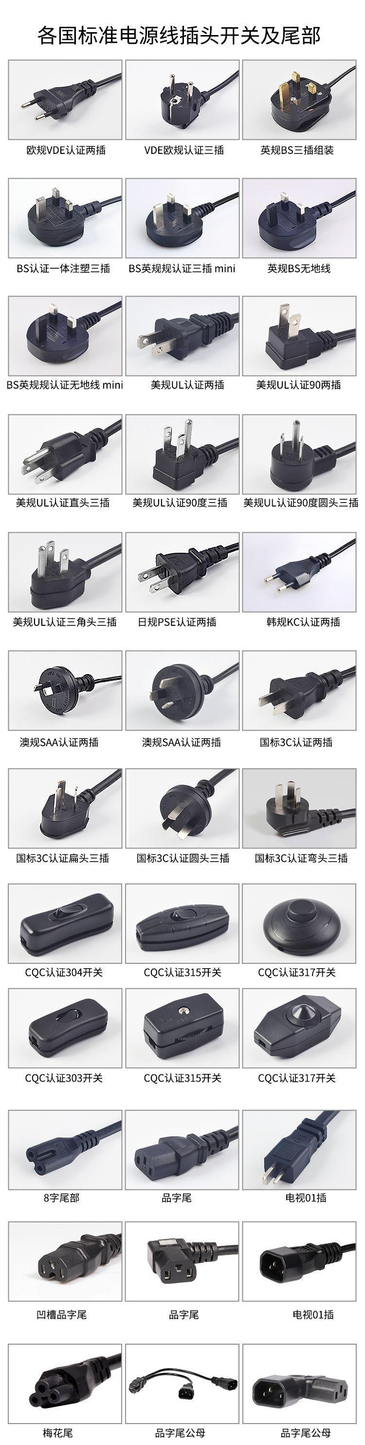 Especializados en la producción de cables de alimentación AC/DC, enchufes de cable de alimentación, cables de alimentación y arneses de cableado eléctrico de varios países;
