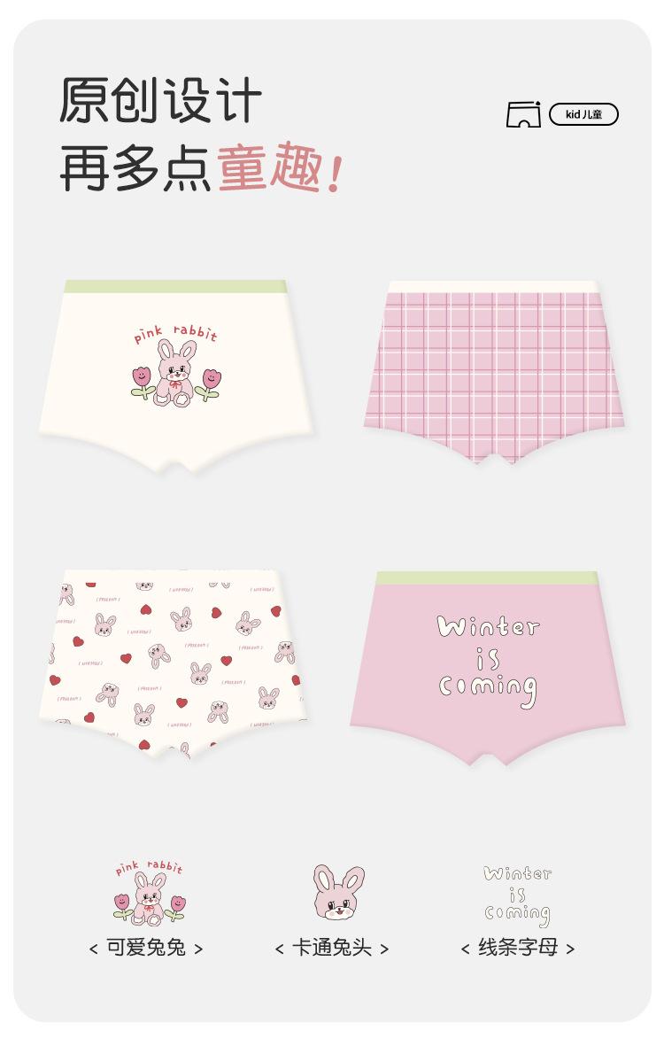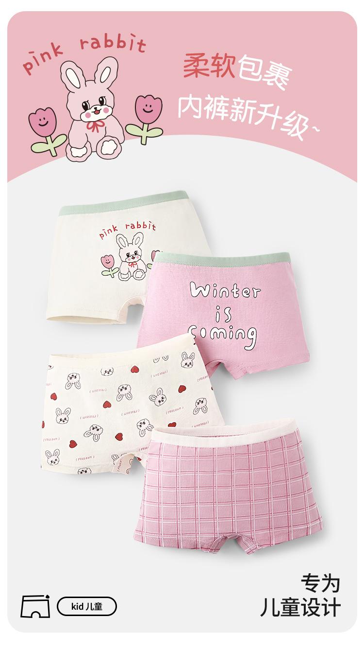 Ropa interior infantil ZYZ de otoño, venta al por mayor, bonitos boxers de conejito de dibujos animados para niños, ropa interior de algodón para niñas