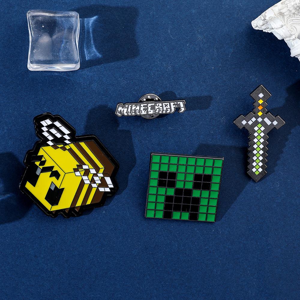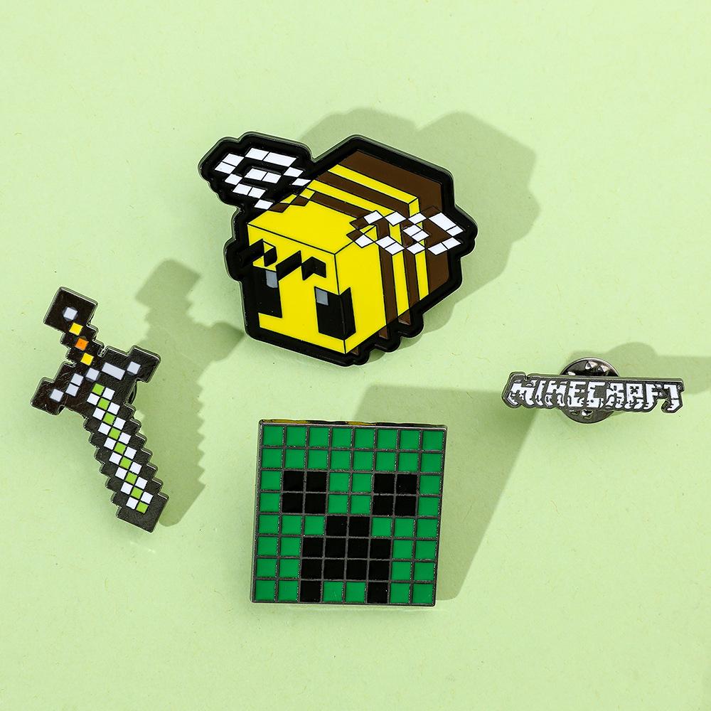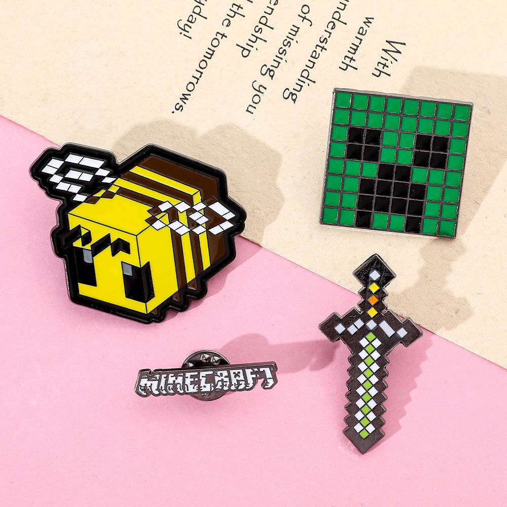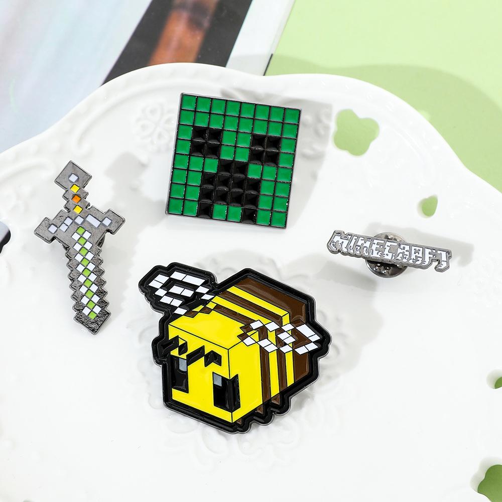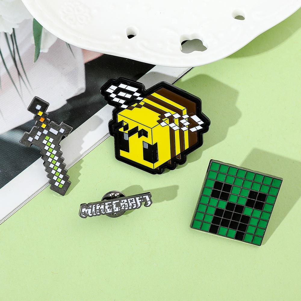 Insignia de metal periférica de juego creativo de dibujos animados, broche de viento de píxeles del mundo, espada de abeja, letra, fuerza dura, miedo, accesorios