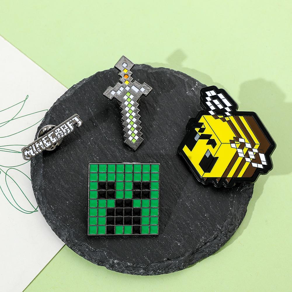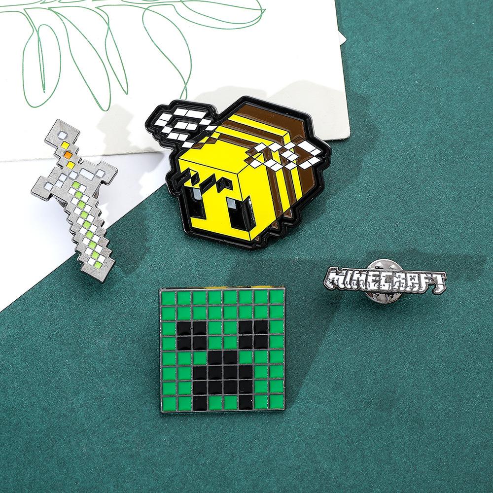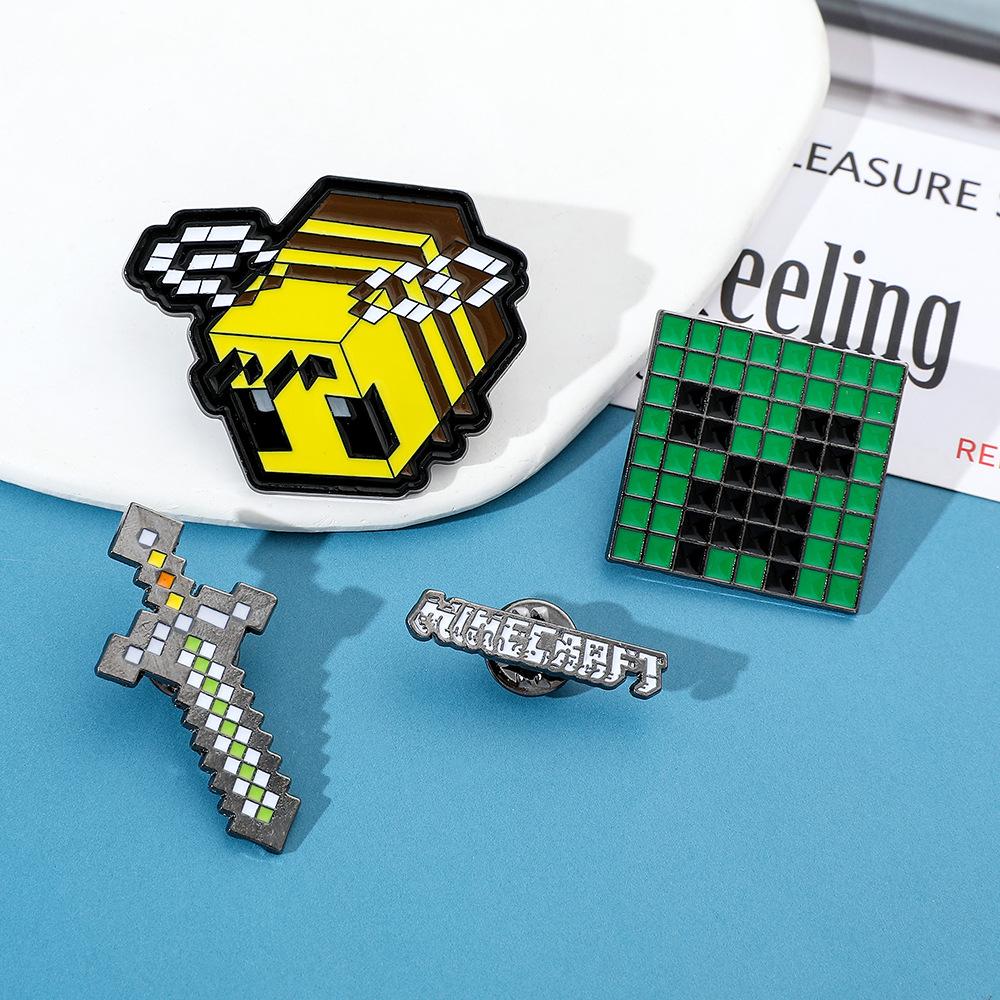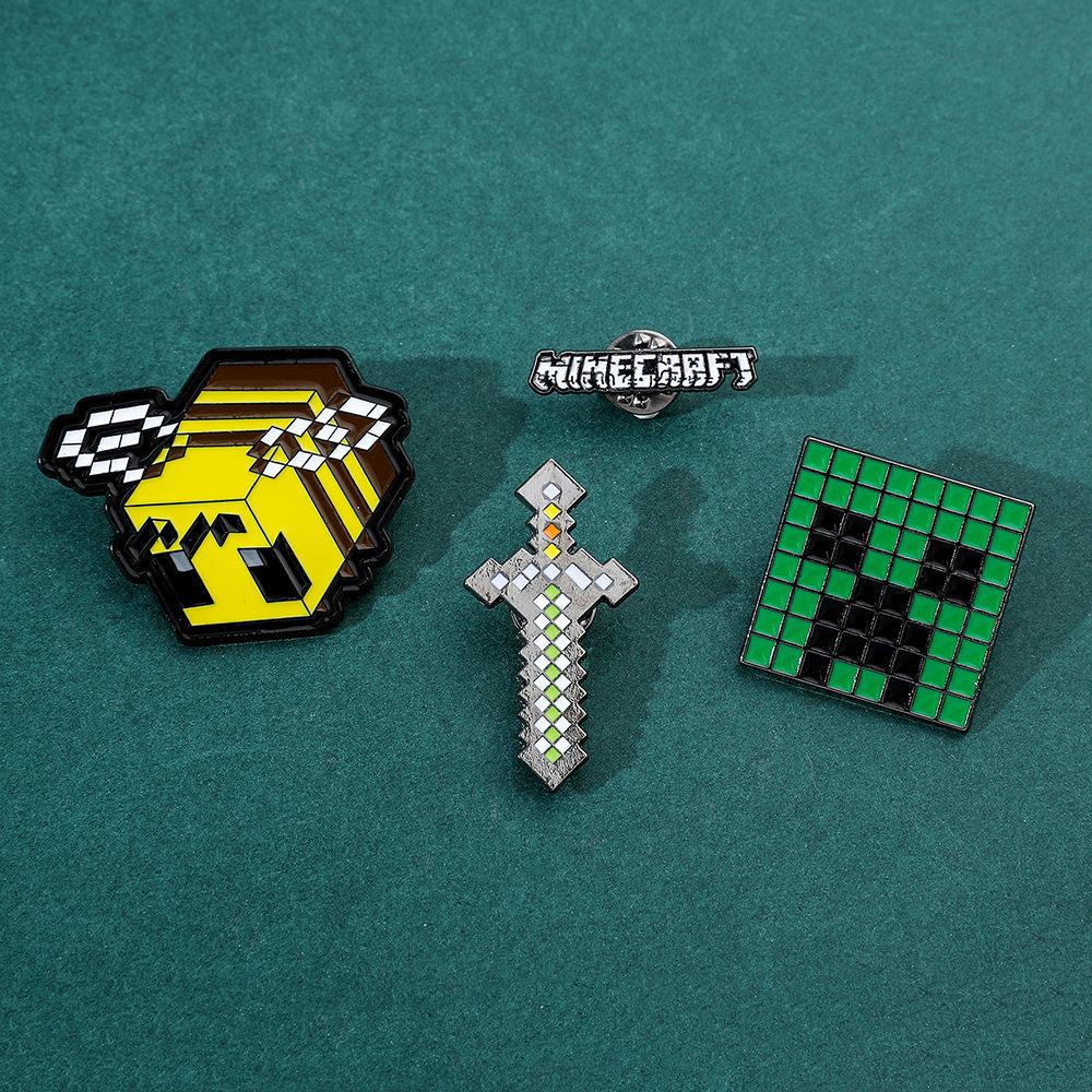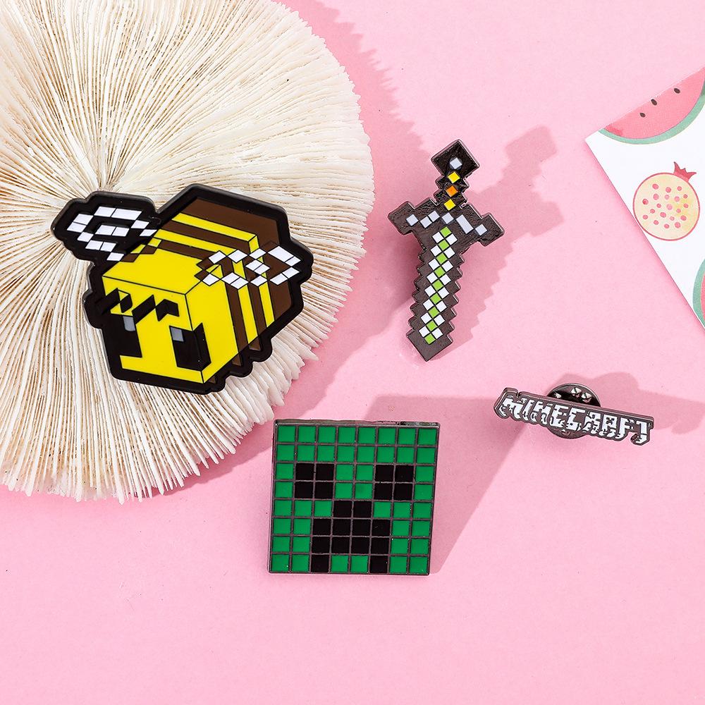 Insignia de metal periférica de juego creativo de dibujos animados, broche de viento de píxeles del mundo, espada de abeja, letra, fuerza dura, miedo, accesorios