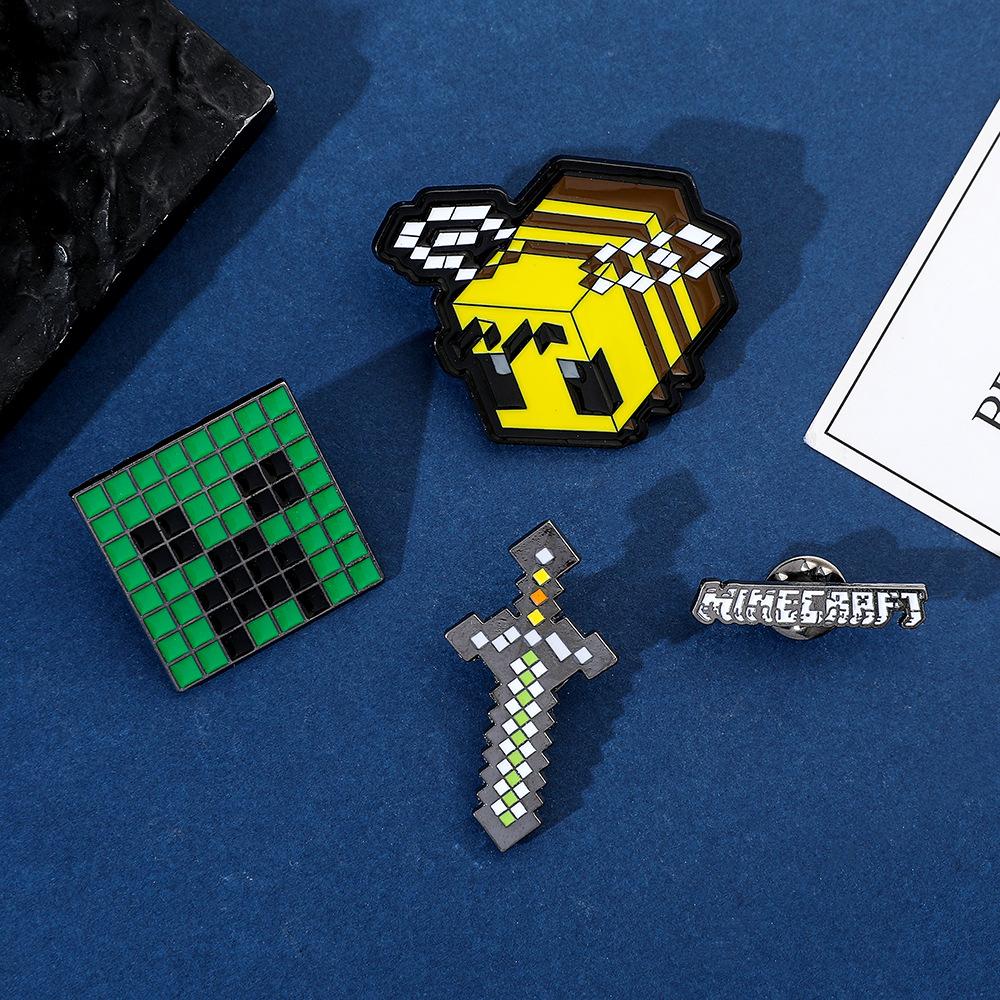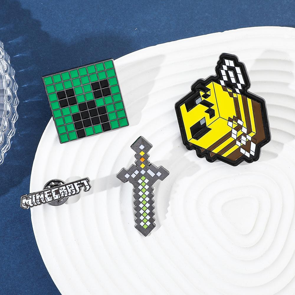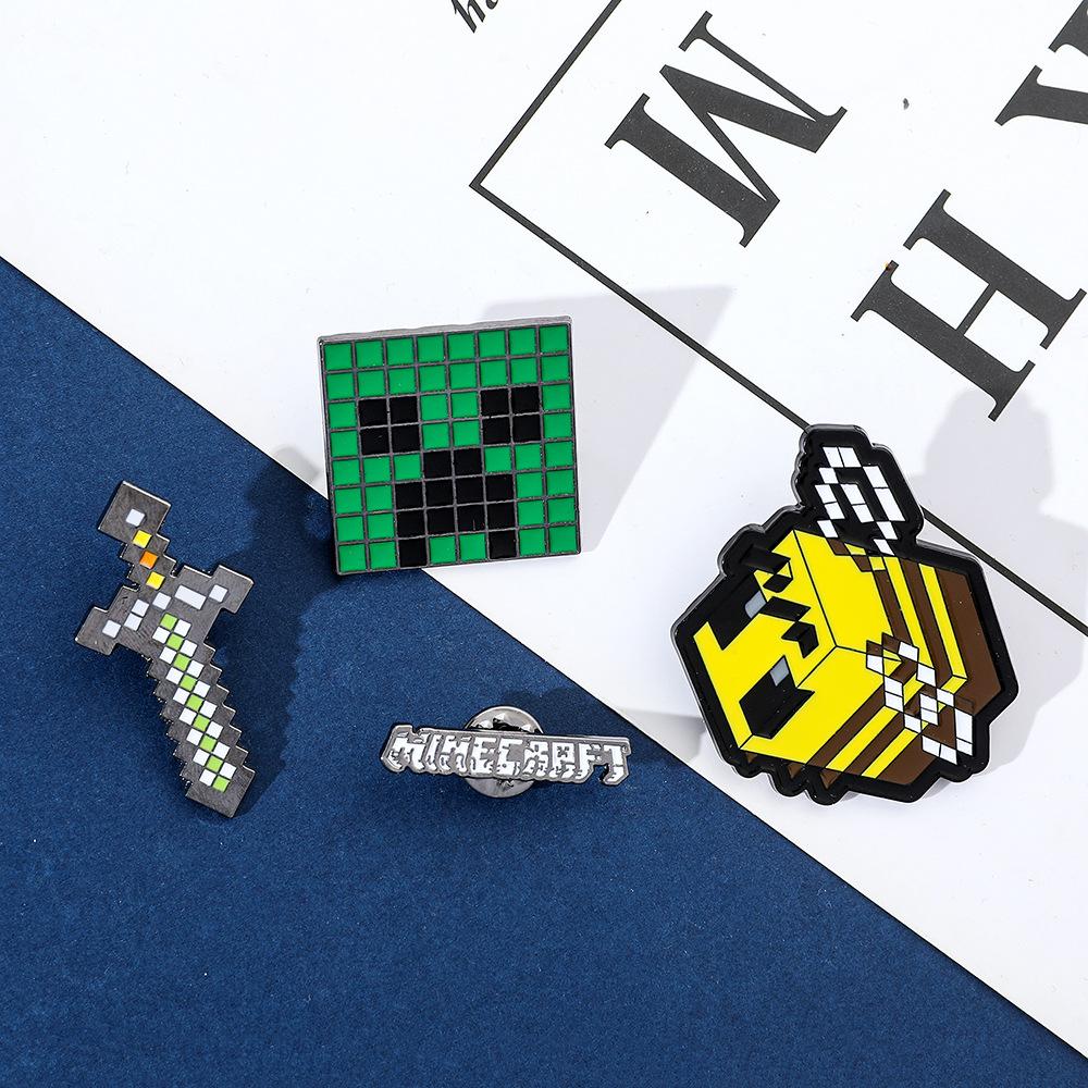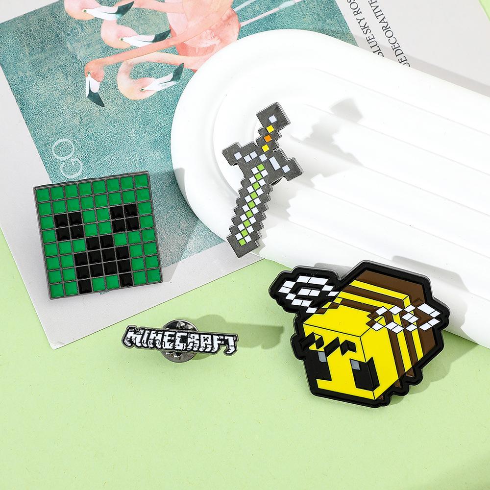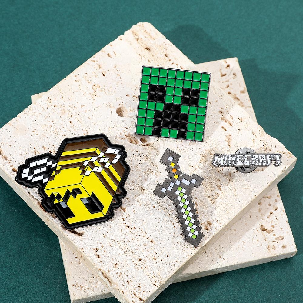 Insignia de metal periférica de juego creativo de dibujos animados, broche de viento de píxeles del mundo, espada de abeja, letra, fuerza dura, miedo, accesorios