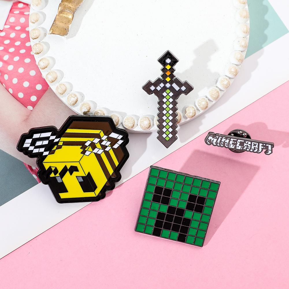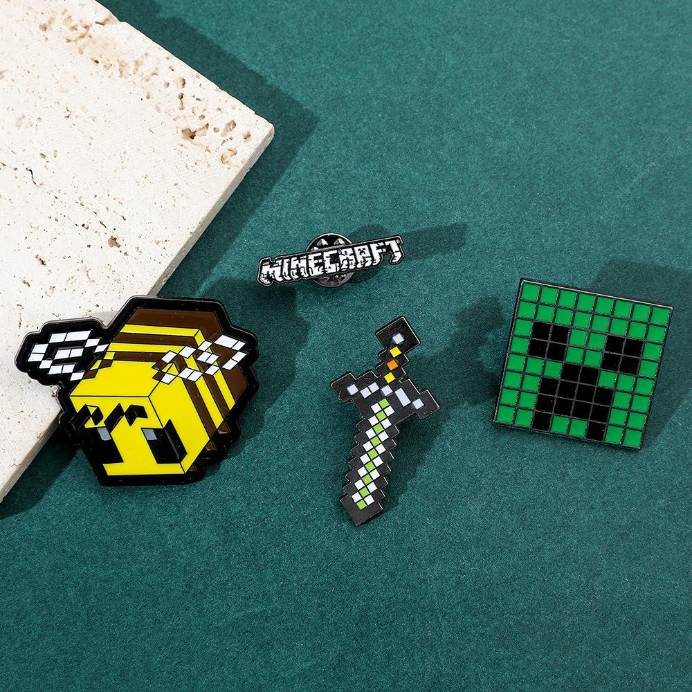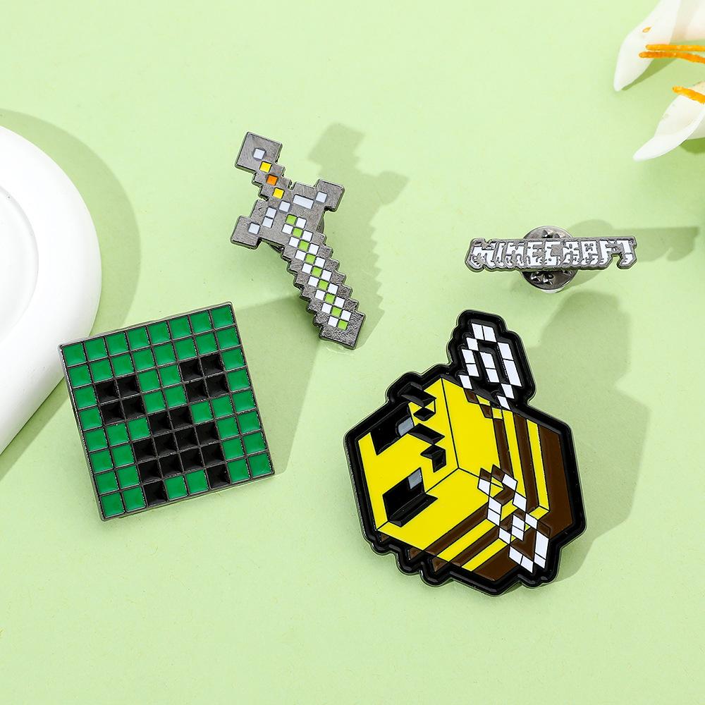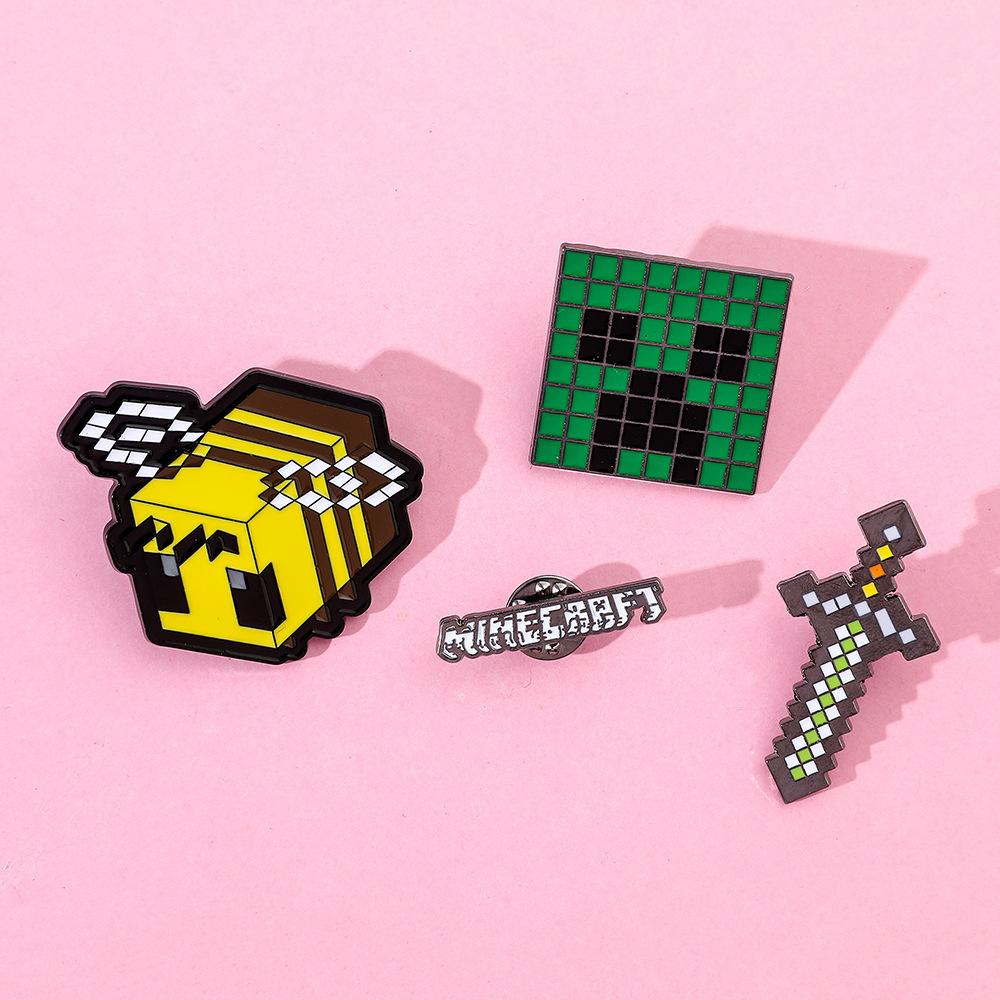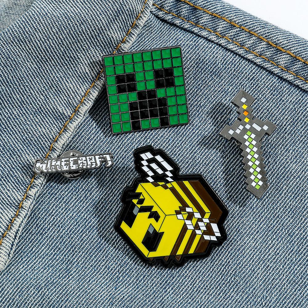 Insignia de metal periférica de juego creativo de dibujos animados, broche de viento de píxeles del mundo, espada de abeja, letra, fuerza dura, miedo, accesorios