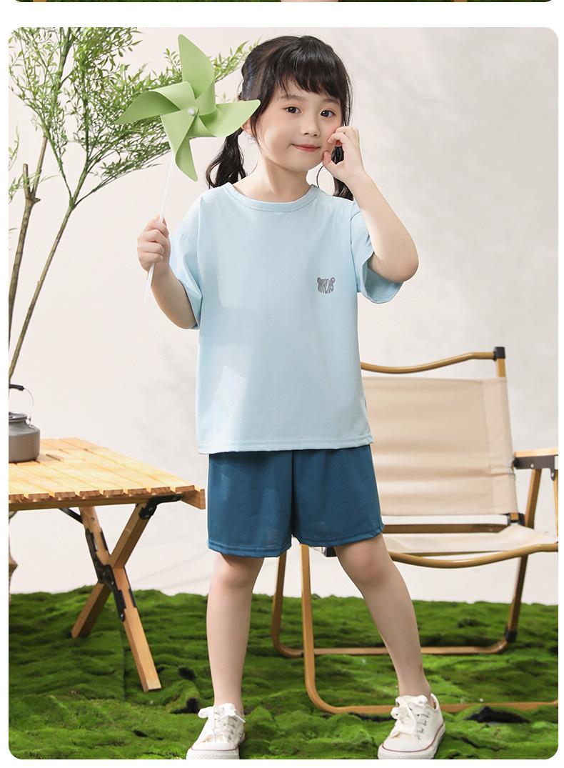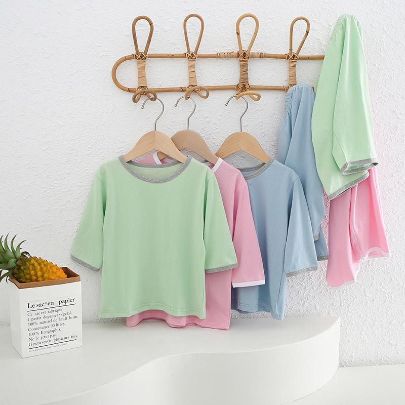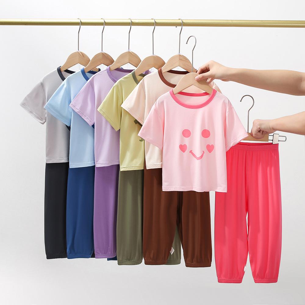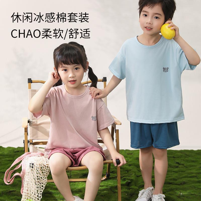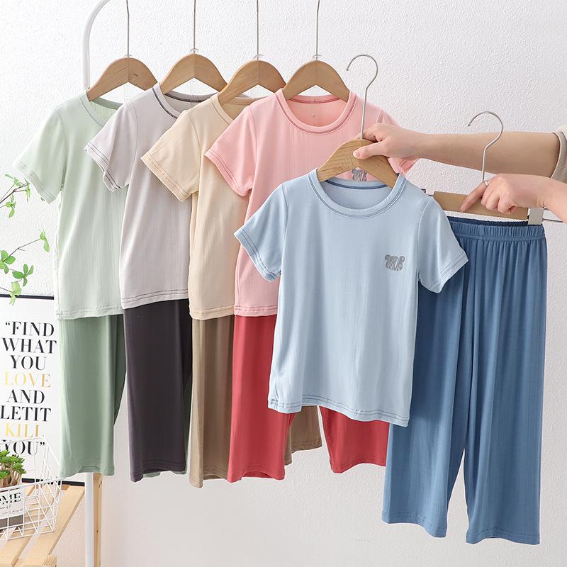 Pijamas para niños de algodón con tacto frío, traje de manga corta para niños, traje fino de verano para niñas con aire acondicionado, ropa para niños de talla mediana y grande, ropa para niños en casa.