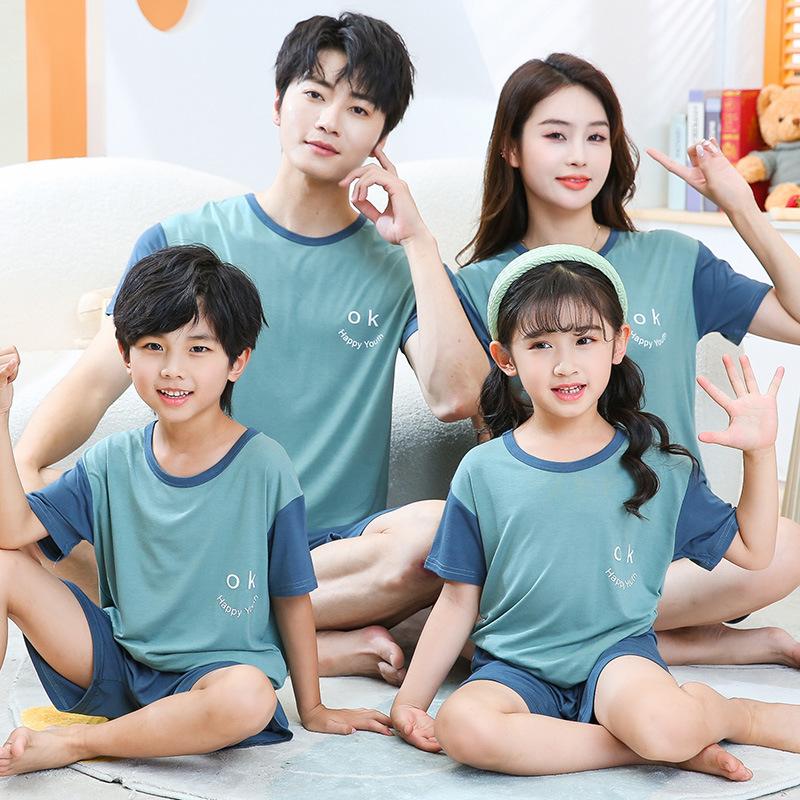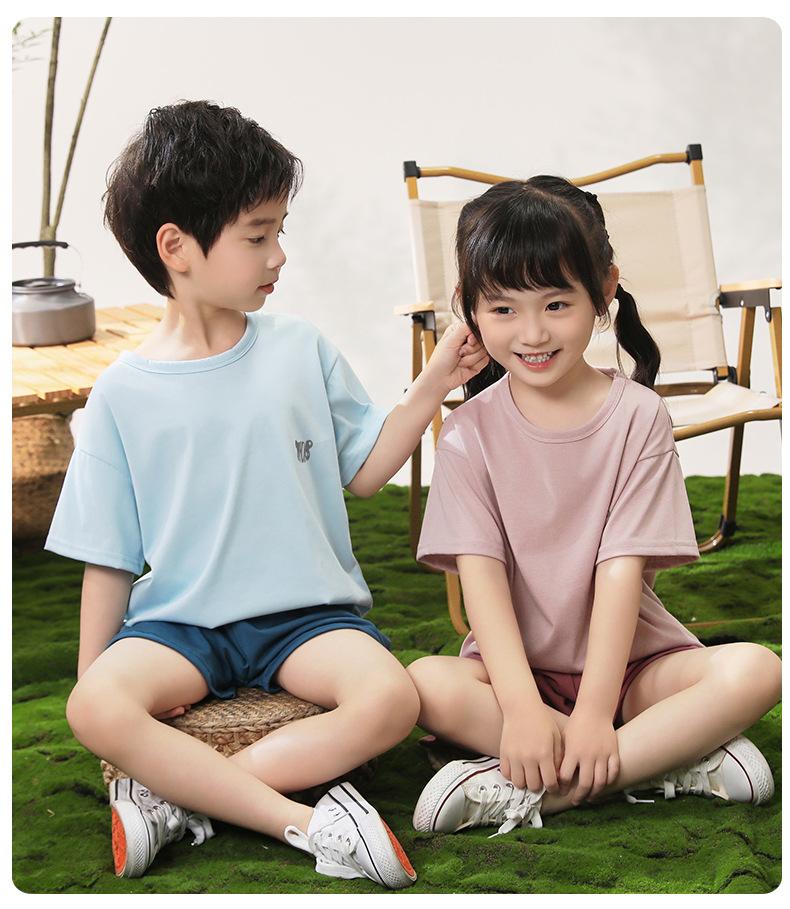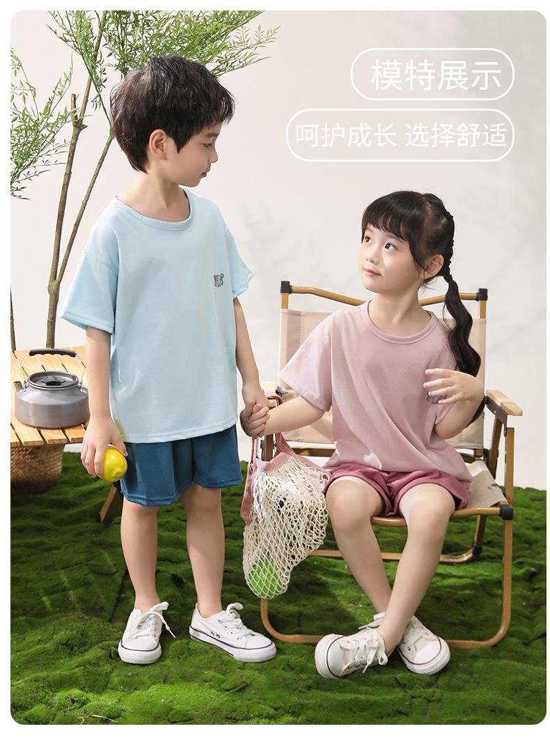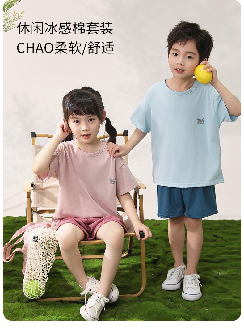Pijamas para niños de algodón con tacto frío, traje de manga corta para niños, traje fino de verano para niñas con aire acondicionado, ropa para niños de talla mediana y grande, ropa para niños en casa.