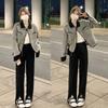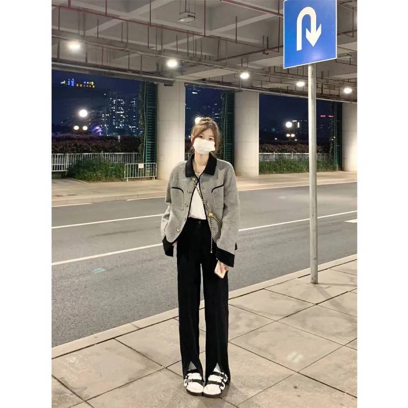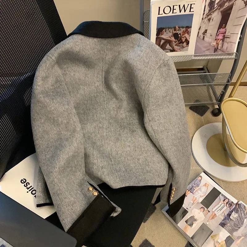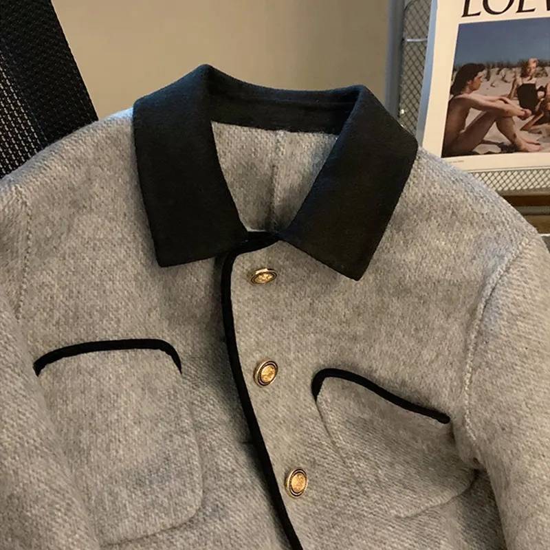 Abrigo elegante estilo Chanel gris de alta sociedad francesa para mujer, diseño de primavera y otoño, uniforme de béisbol corto pequeño de alta calidad