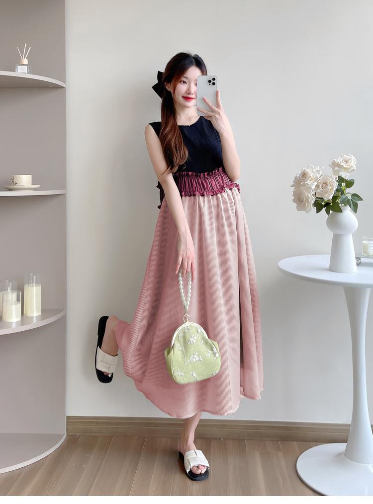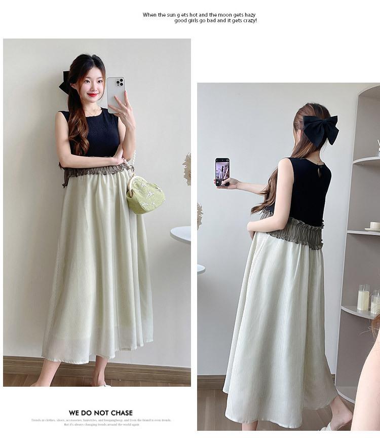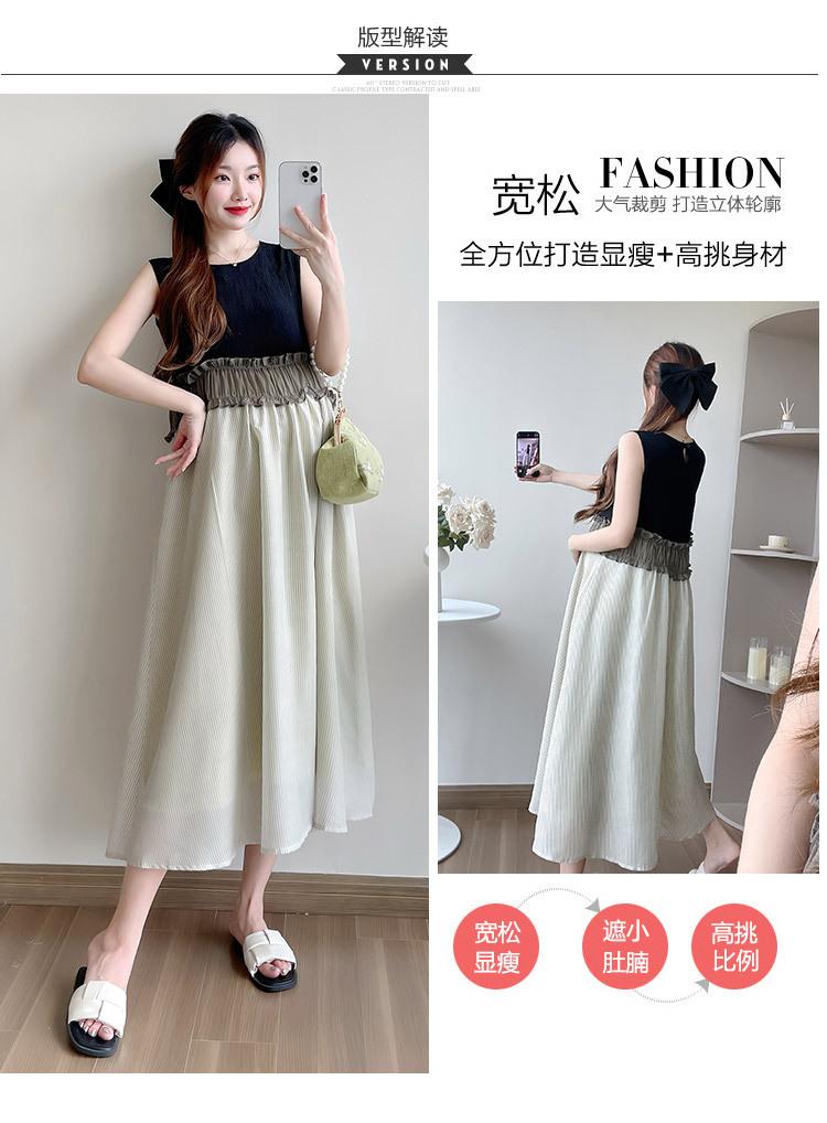 Falda de verano 2024 para embarazadas, nueva moda, suelta, con costuras francesas, sin mangas, vestido de verano para embarazadas.