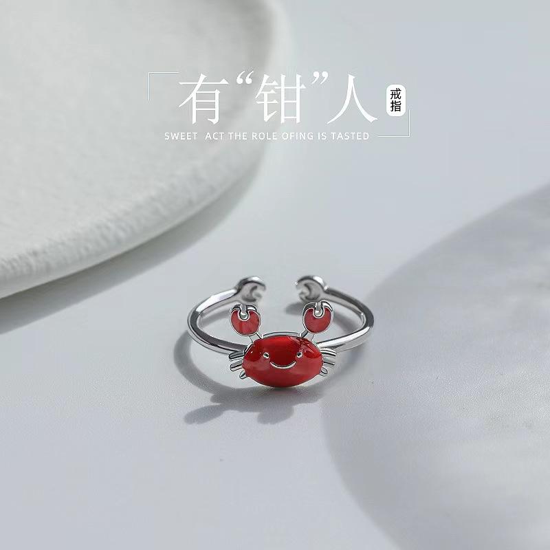 Anillo de Cangrejo de Plata Tailandesa para Mujer, Lindo, Moderno y Personalizado Abierto, Diseño Nicho, Tenazas, Anillo de Dedo Índice de Moda