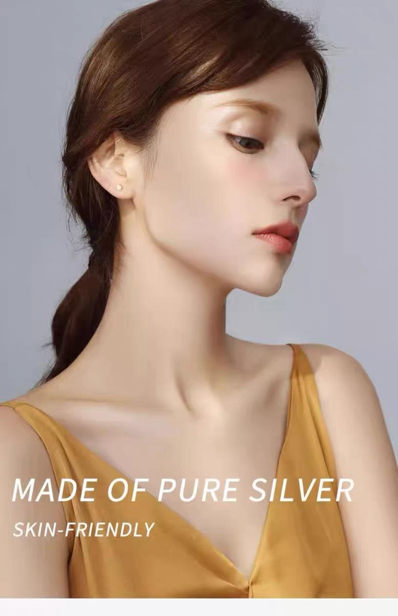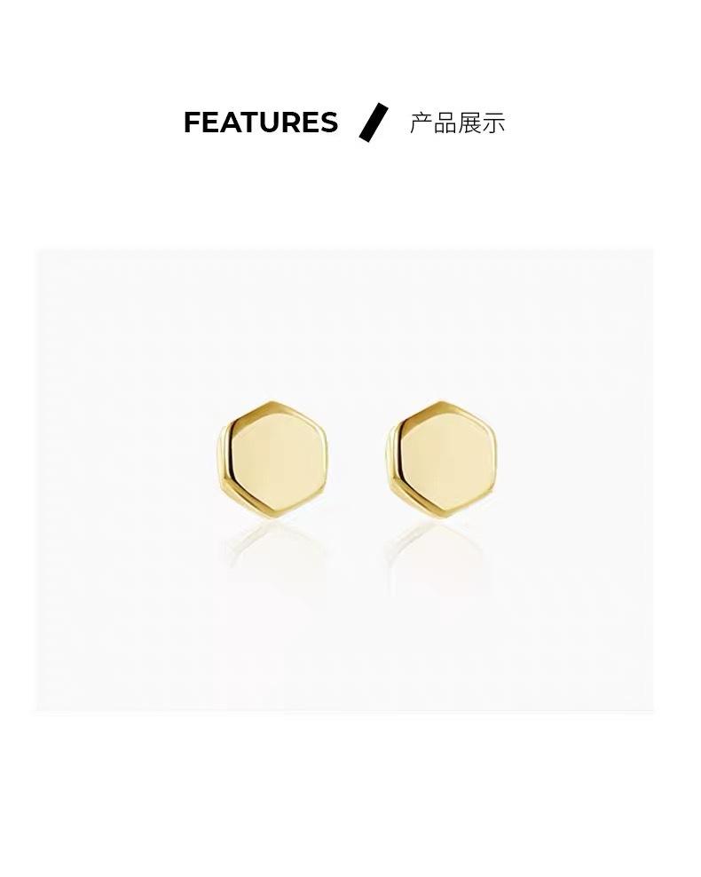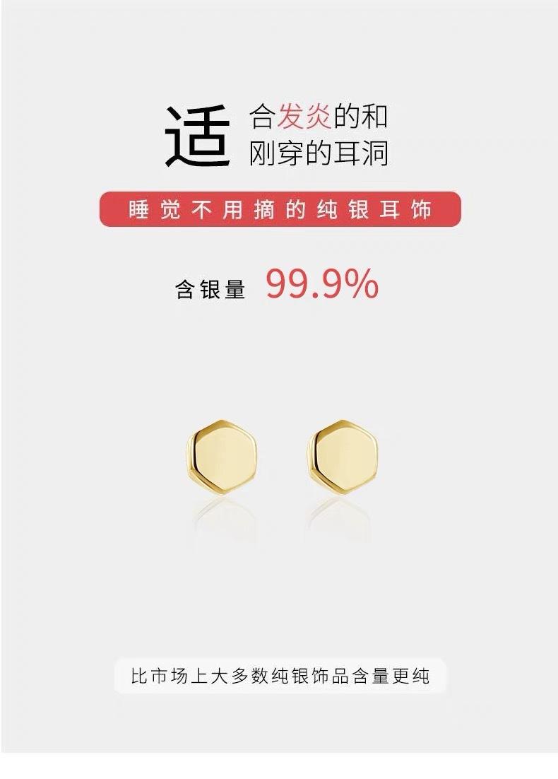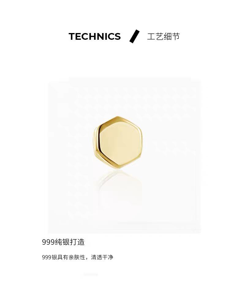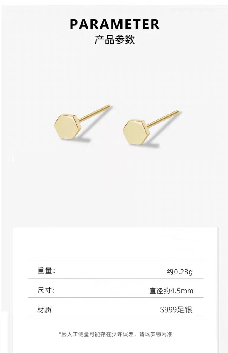 Pendientes geométricos hexagonales de plata de ley S999 para mujer, con pequeños agujeros en las orejas, modernos y neutros, con forma de hueso de oreja, venta al por mayor
