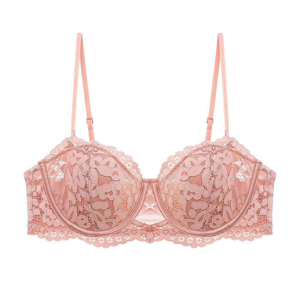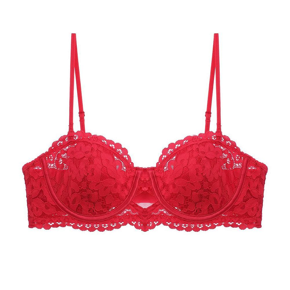 Ropa interior sexy de encaje francés push-up de media copa con bordado de aro de acero suave, sujetador fino de algodón, pecho grande, sujetador sexy pequeño
