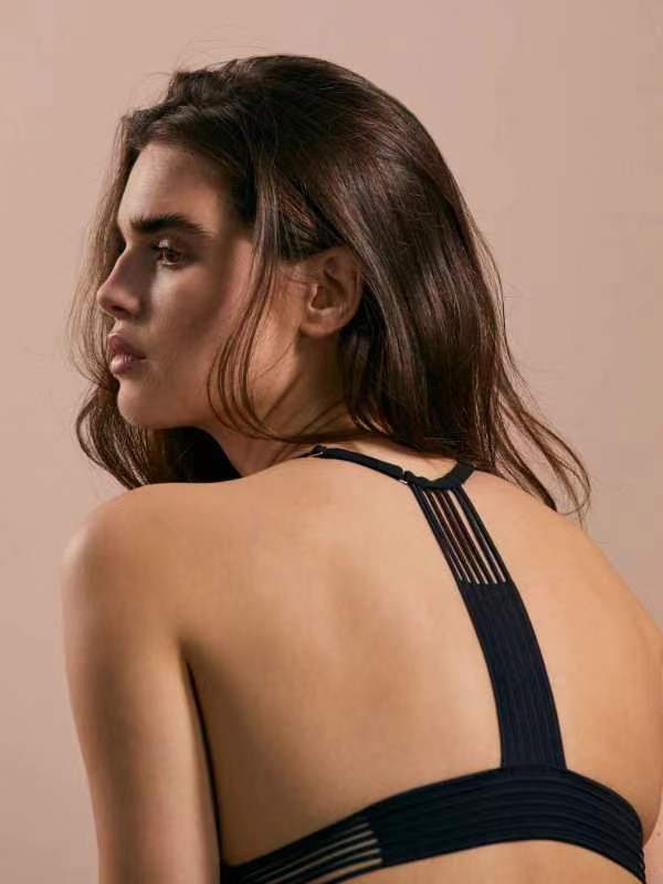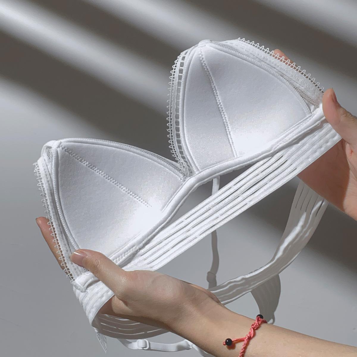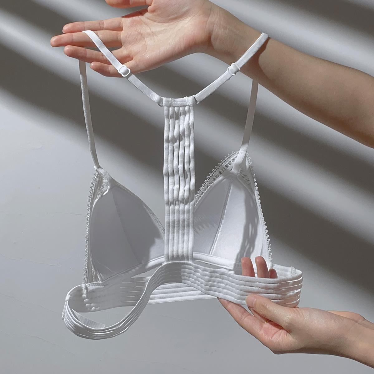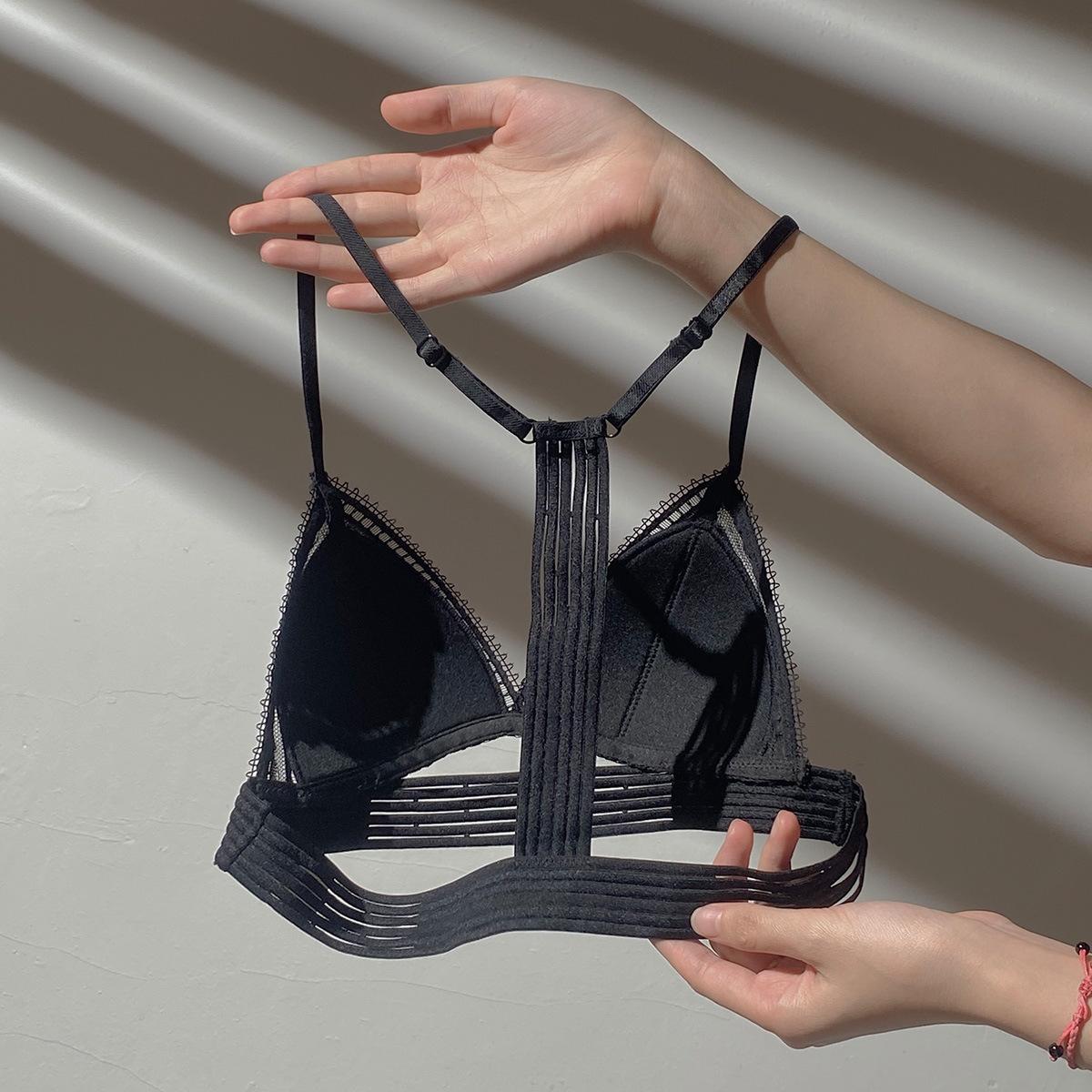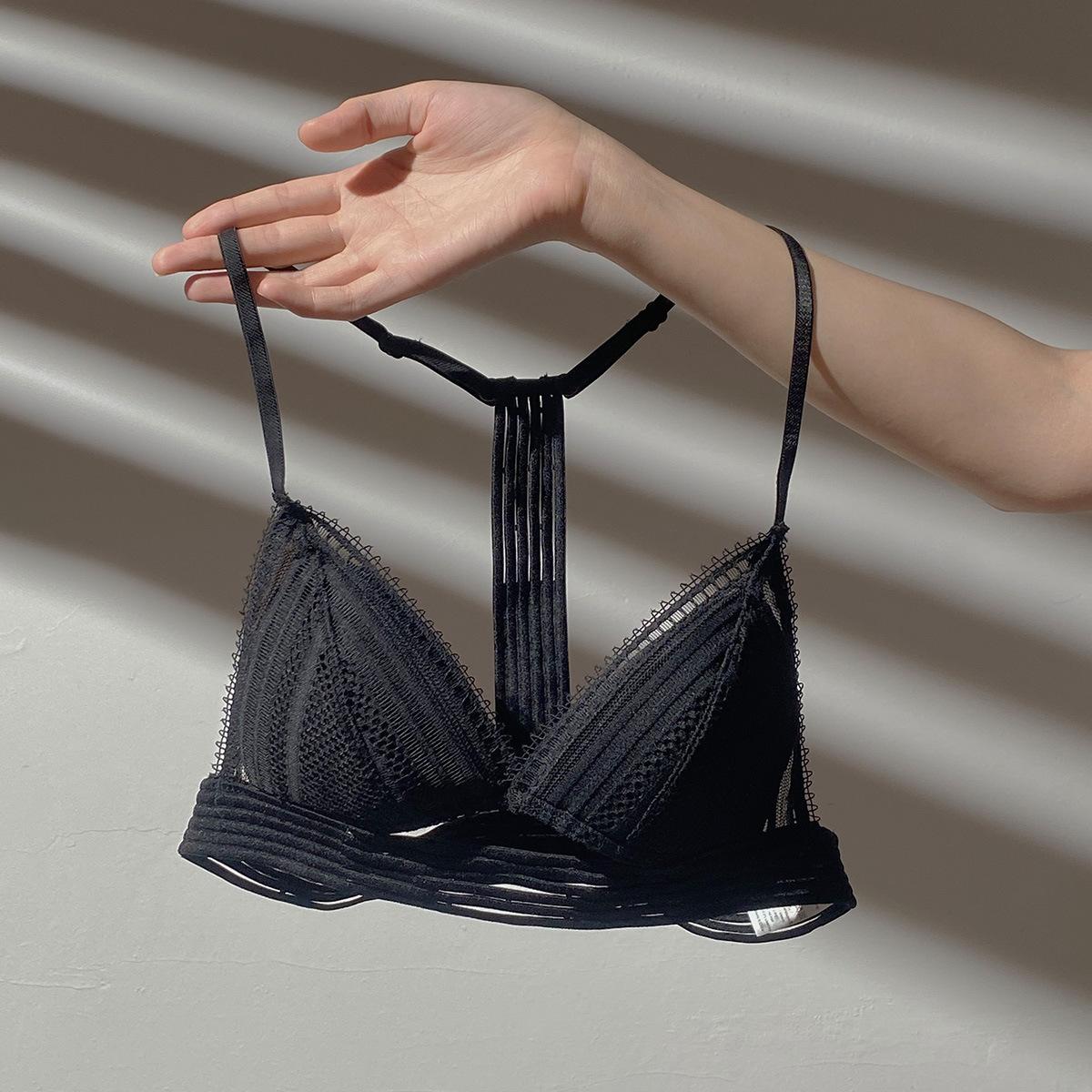 Nuevo conjunto de sujetador sexy de copa triangular estilo francés para mujer, fino, sin aros de acero, con encaje y espalda hermosa