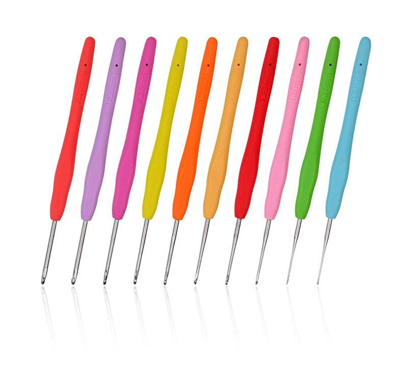 6 Herramientas de Crochet de Mango Suave DIY Zapatos de Muñeca Bolso Bufanda Material de Tejido de Lana Hecho a Mano Gancho de Crochet Extra Fino