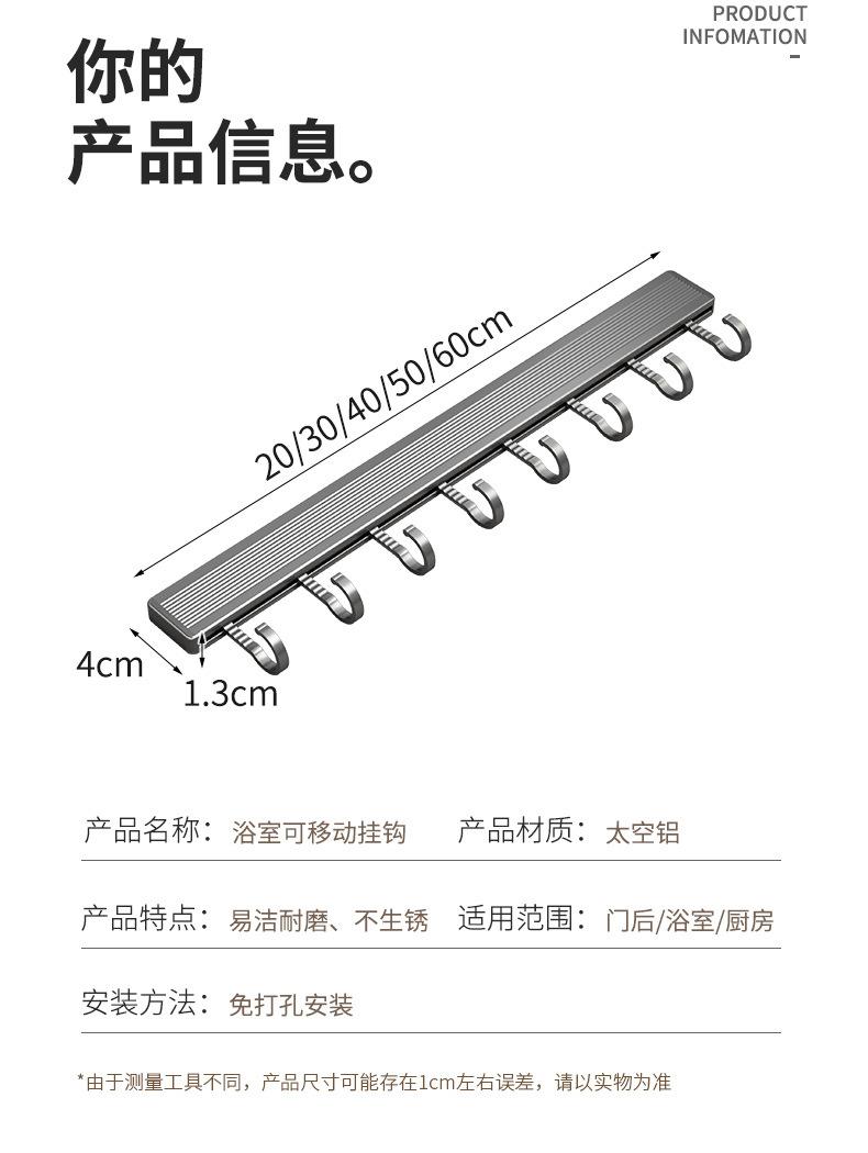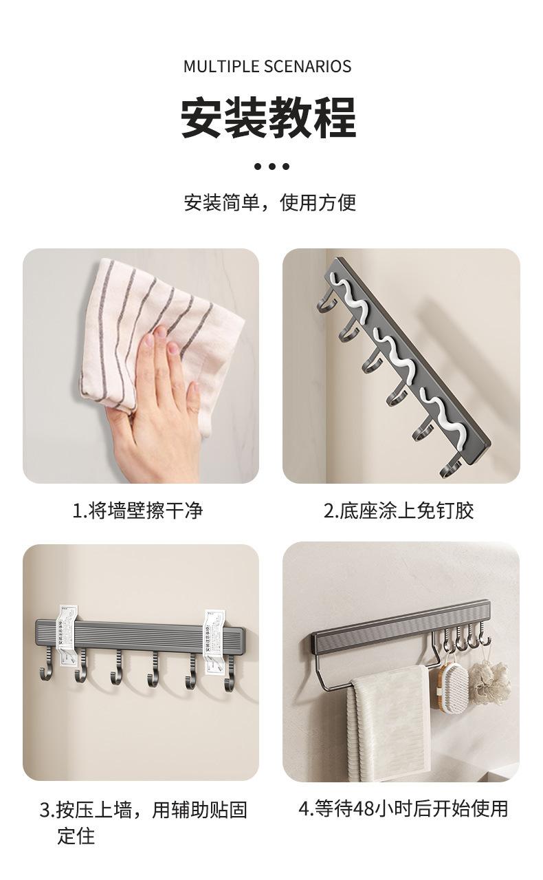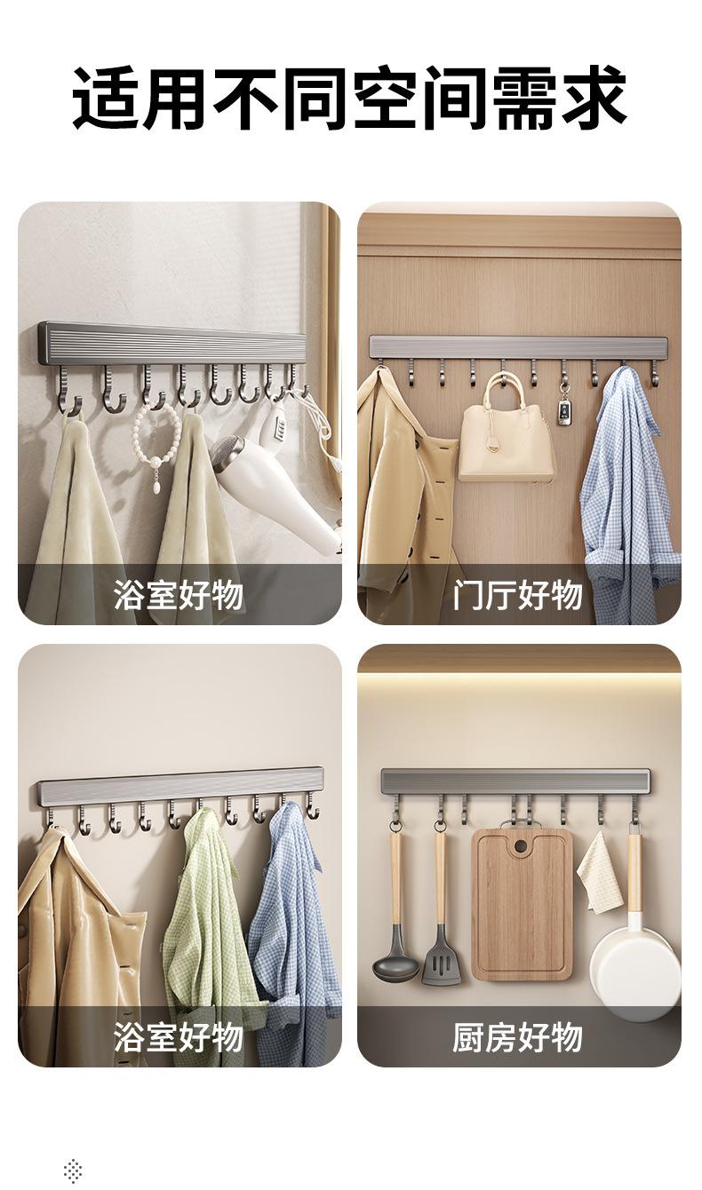 Gancho para puerta de aluminio sin perforaciones, gancho para baño, gancho para almacenamiento de dormitorio, gancho para pared de entrada