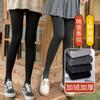 Leggings de algodón con rayas verticales para mujer, ropa exterior de otoño e invierno, pantimedias cálidas con forro polar, leggings grises ajustados y gruesos