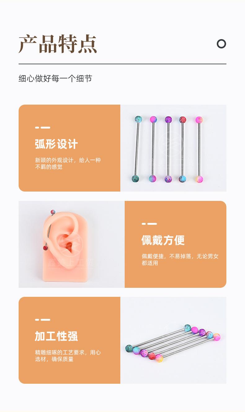 Arete de barra larga transfronterizo, clavo para el hueso de la oreja, expansión del agujero de la oreja, arete piercing de bola, joyería coreana, acero de titanio transfronterizo, hueso