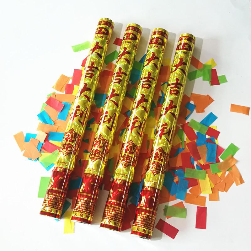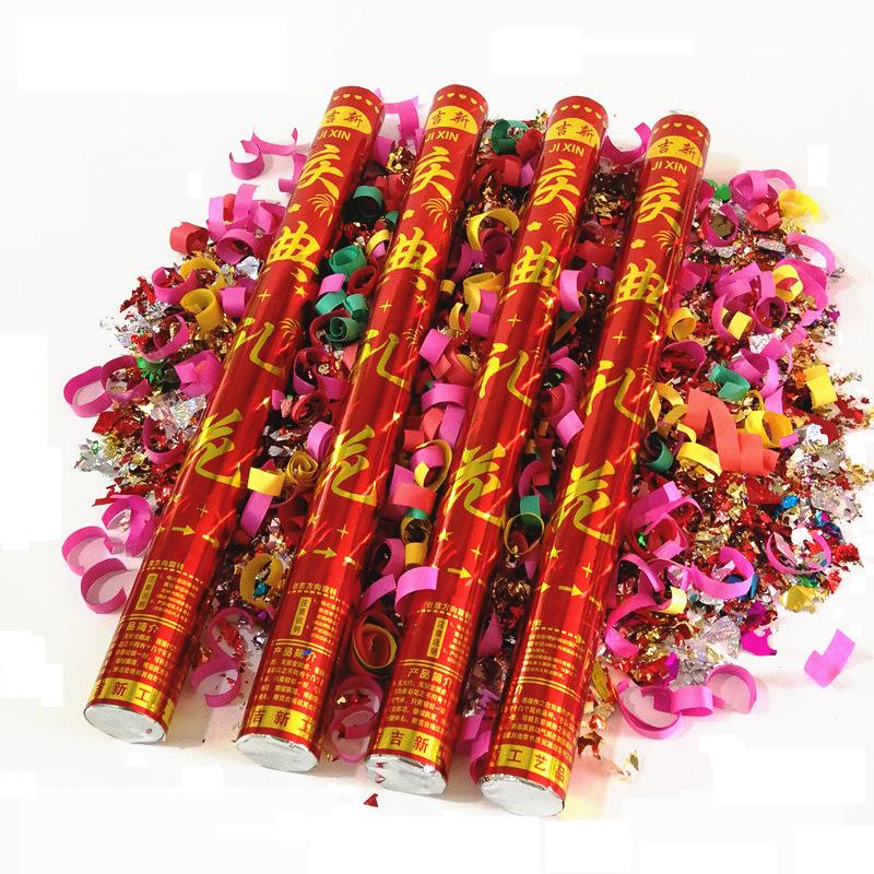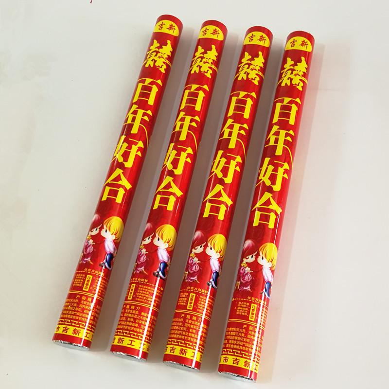 Instrucciones de uso: Los fuegos artificiales y salvas se utilizan ampliamente en diversas actividades festivas, como ceremonias de inauguración, bodas, eventos culturales y deportivos, fiestas y carnavales. Utilizan papel de flores de plástico de colores como material y gas comprimido como combustible. No contaminan y se liberan de forma segura.