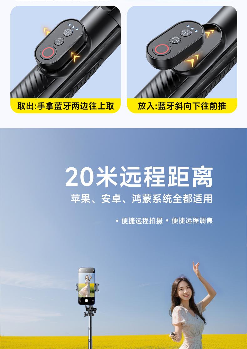 Palo de selfie para teléfono móvil Bluetooth TikTok transmisión en vivo integrado telescópico portátil soporte de fotografía trípode universal
