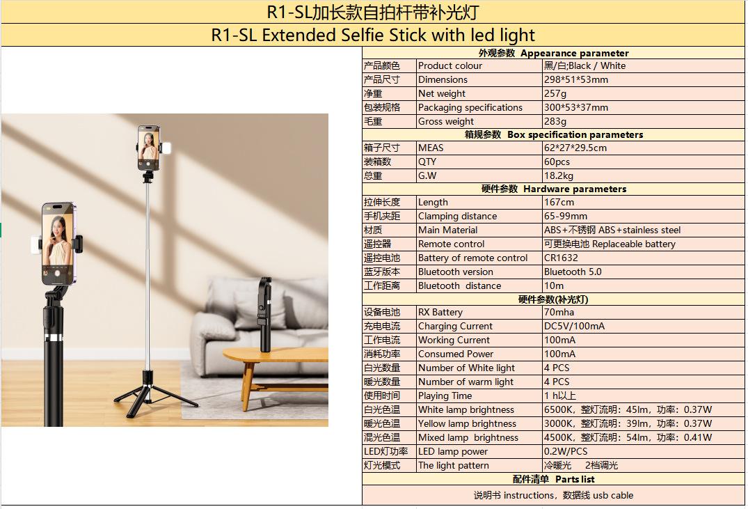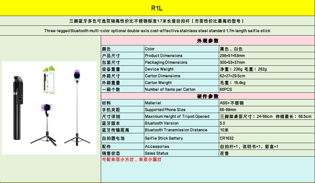 R1-0.7m selfie stick black, R1-0.7m selfie stick pink, R1s-0.7m fill light selfie stick black, R1s-0.7m fill l...