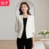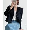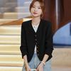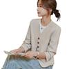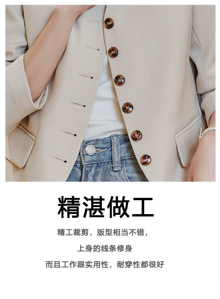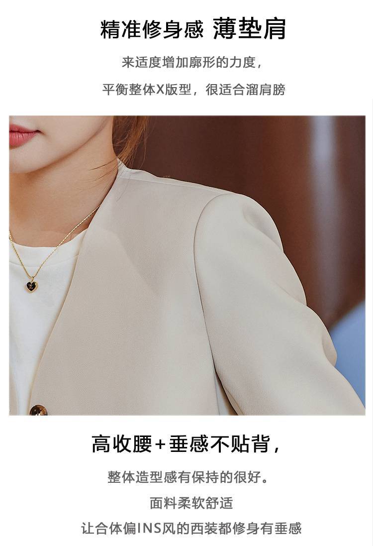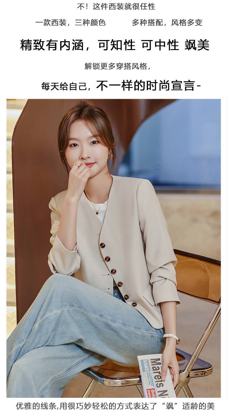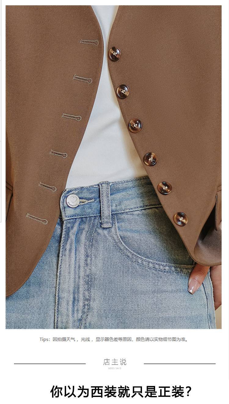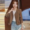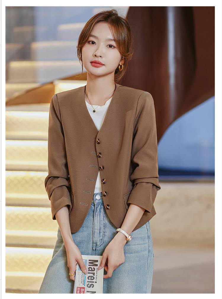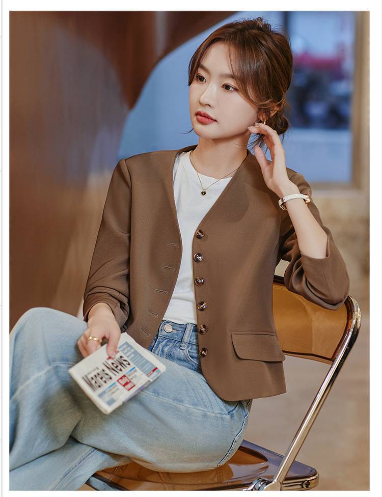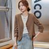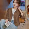 Chaqueta de traje color café con cuello en V para mujer Primavera y Otoño 2023 nuevo traje pequeño corto de alta calidad sin cuello primavera