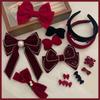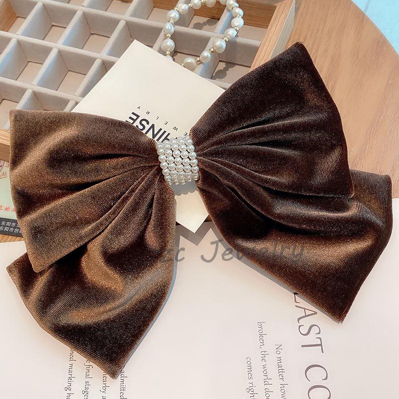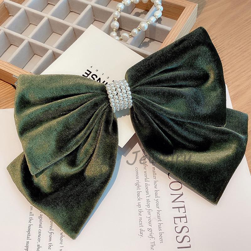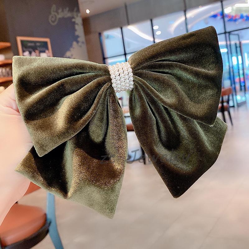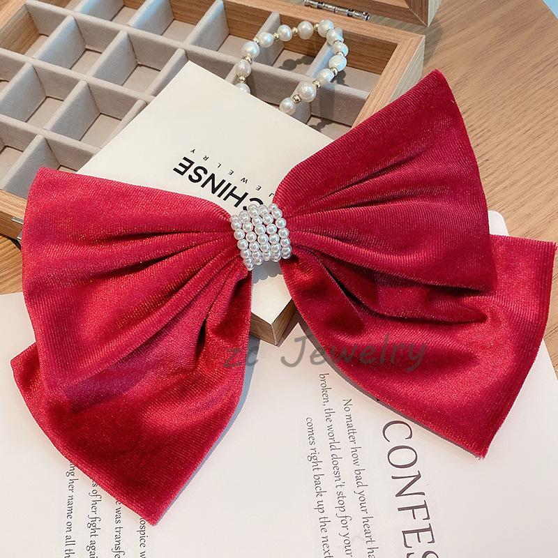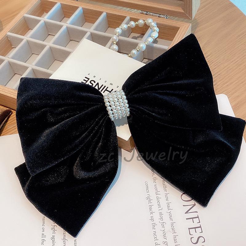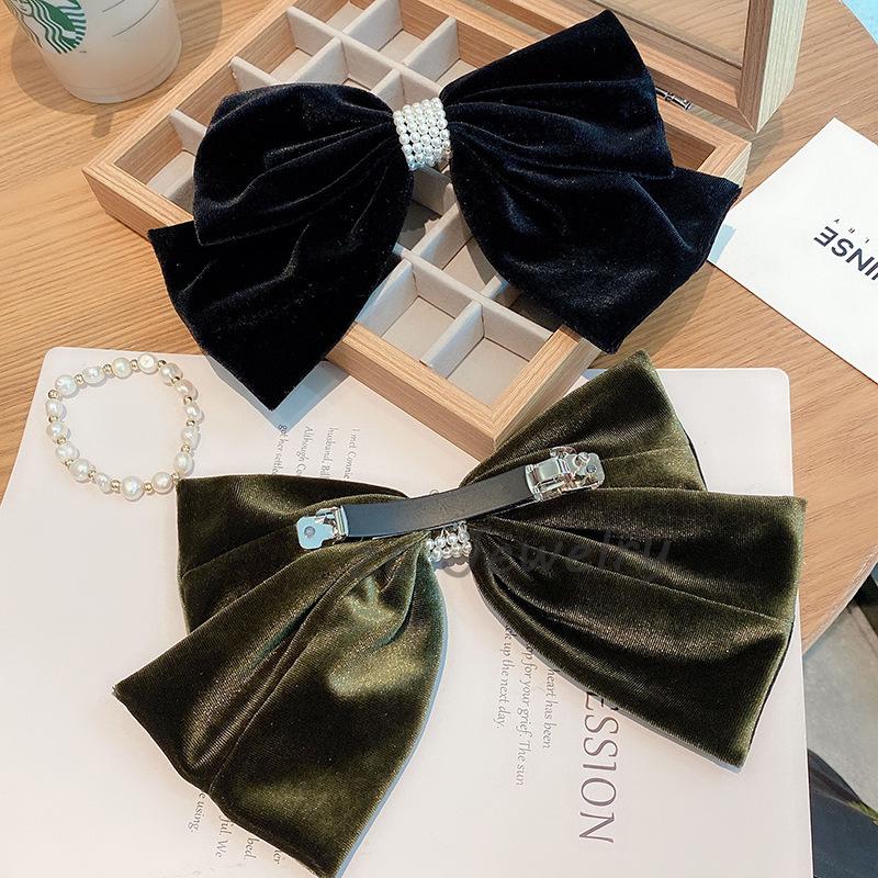 Horquilla con lazo de terciopelo estilo coreano, nueva horquilla con parte superior de perla en la parte posterior, elegante y extrovertida, accesorios para el cabello para mujeres.