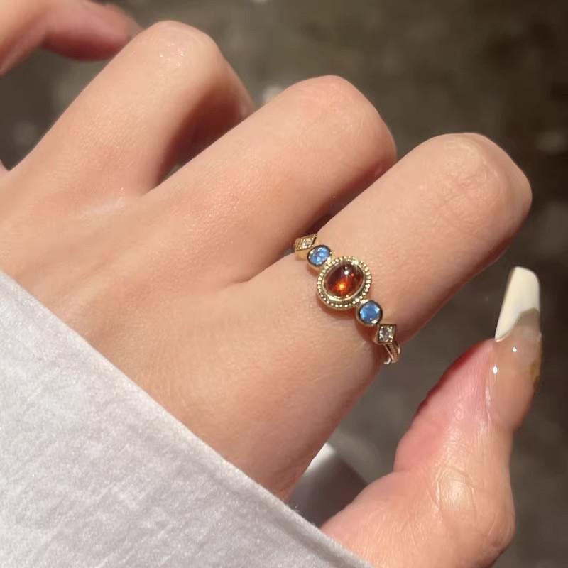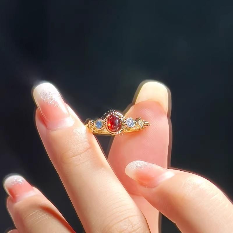 Anillo retro de pájaro de palacio pequeño, anillo de rubí exquisito de alta gama, anillo estilo corte para mujer