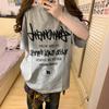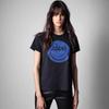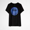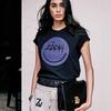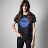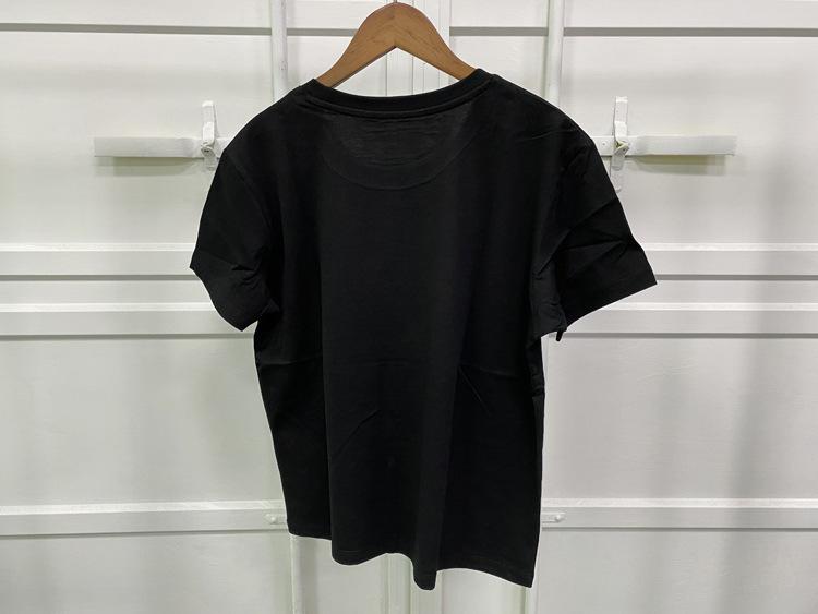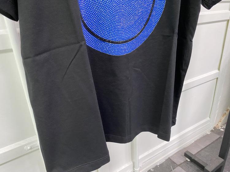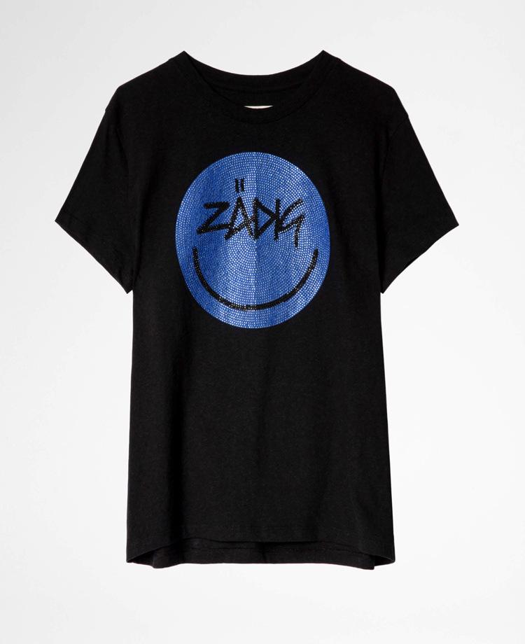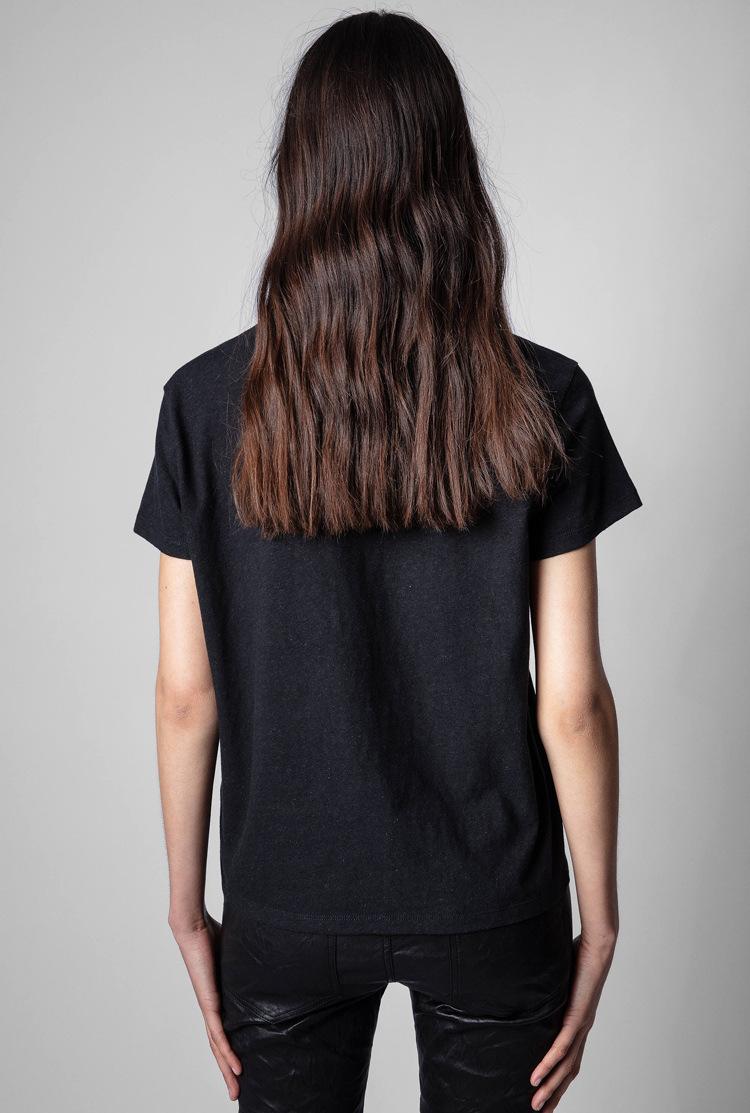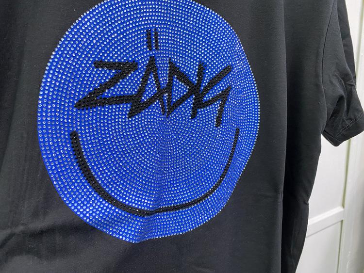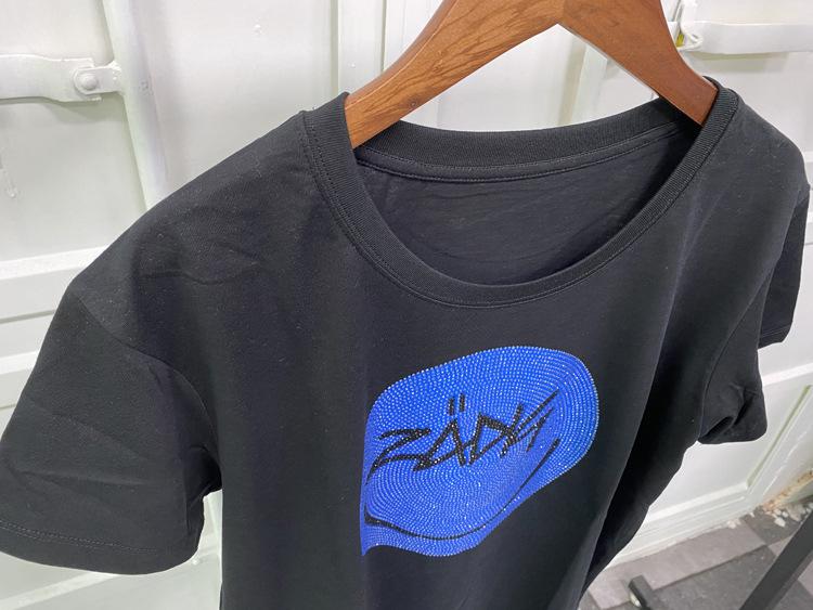 21 nueva camiseta de algodón de manga corta para mujer estilo francés con estampado de letras ZV y carita sonriente de diamantes de imitación negros