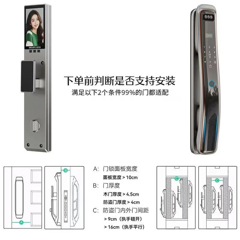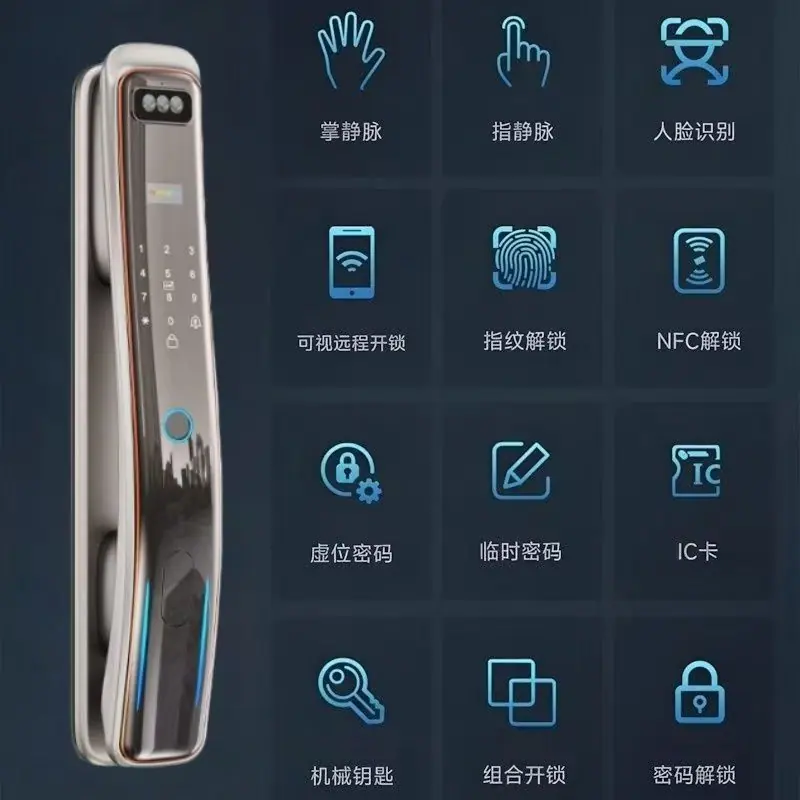 Fingerprint, Password, With key, Visual cat eye, Face recognition, Remote unlock