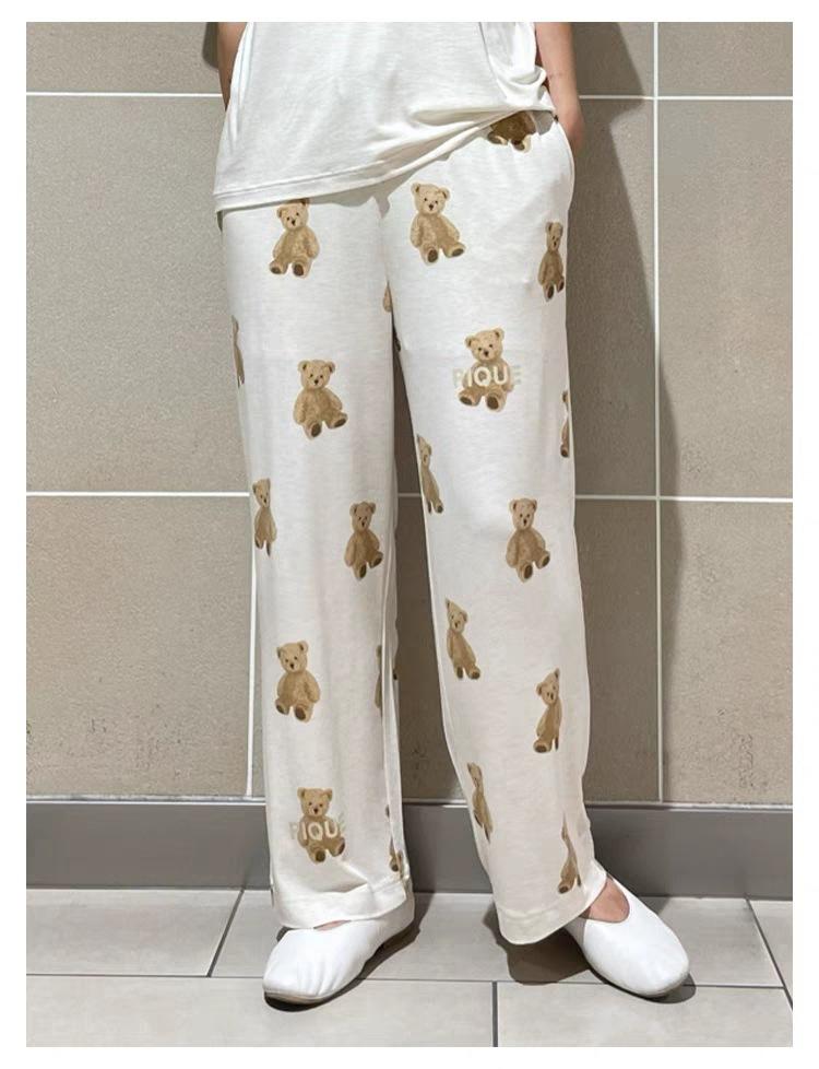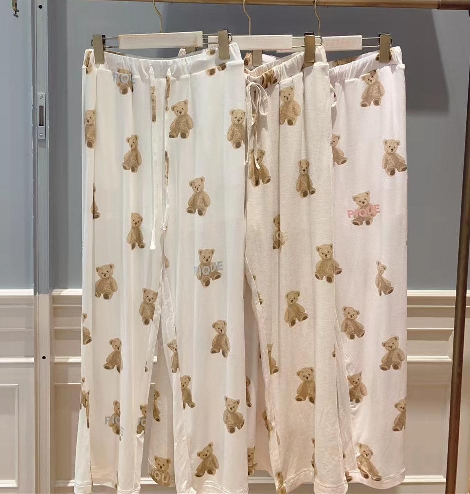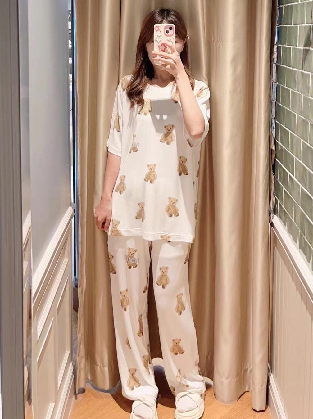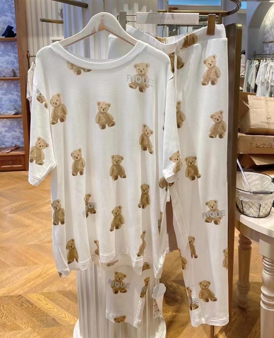 Gp Sin Marca Original Estilo Helado Suave Algodón para Mujer Lindo Estampado de Oso Ropa Exterior Manga Corta Conjunto de Pantalón Largo Ropa para Estar en Casa