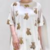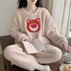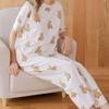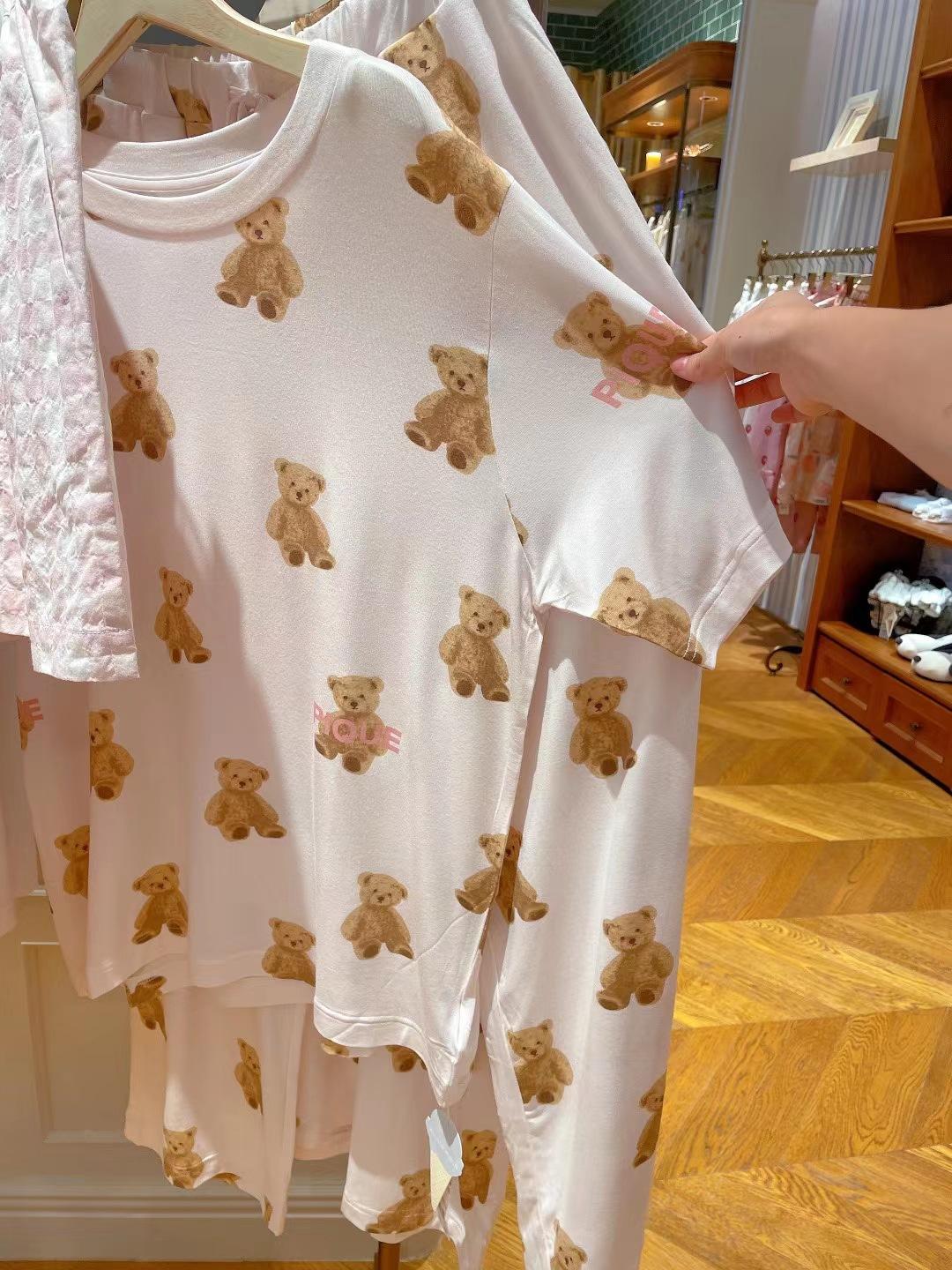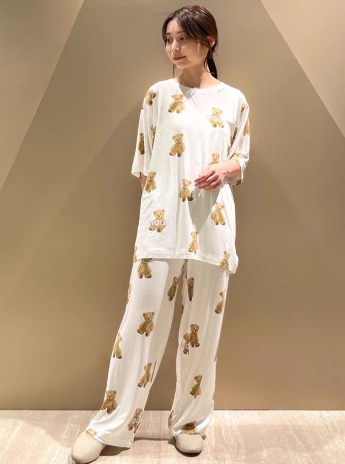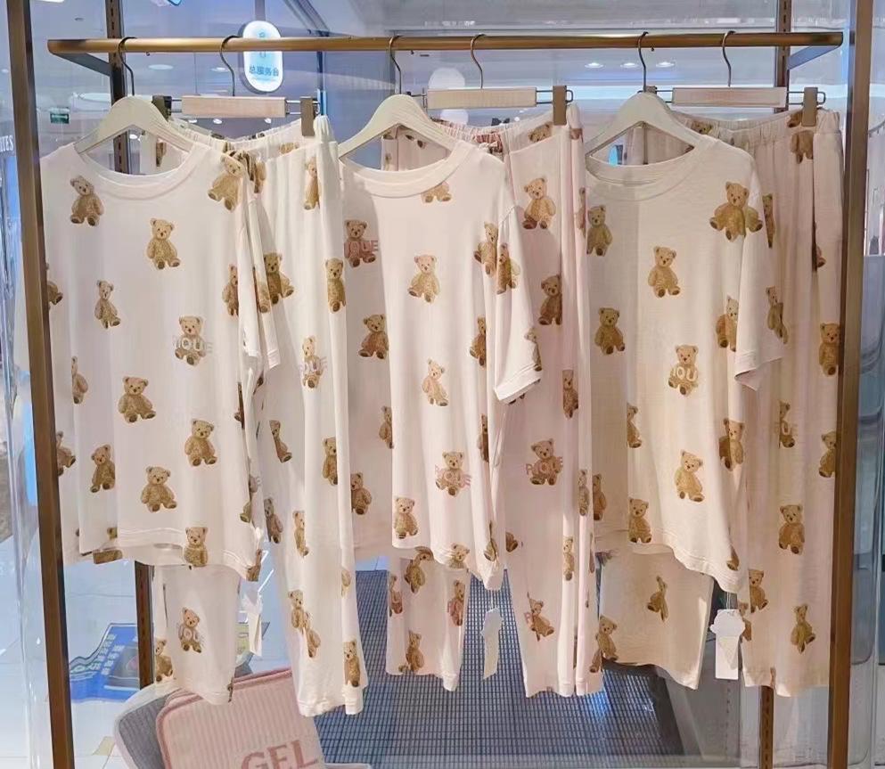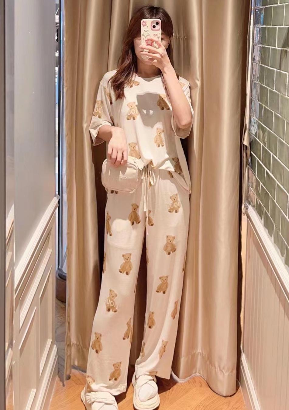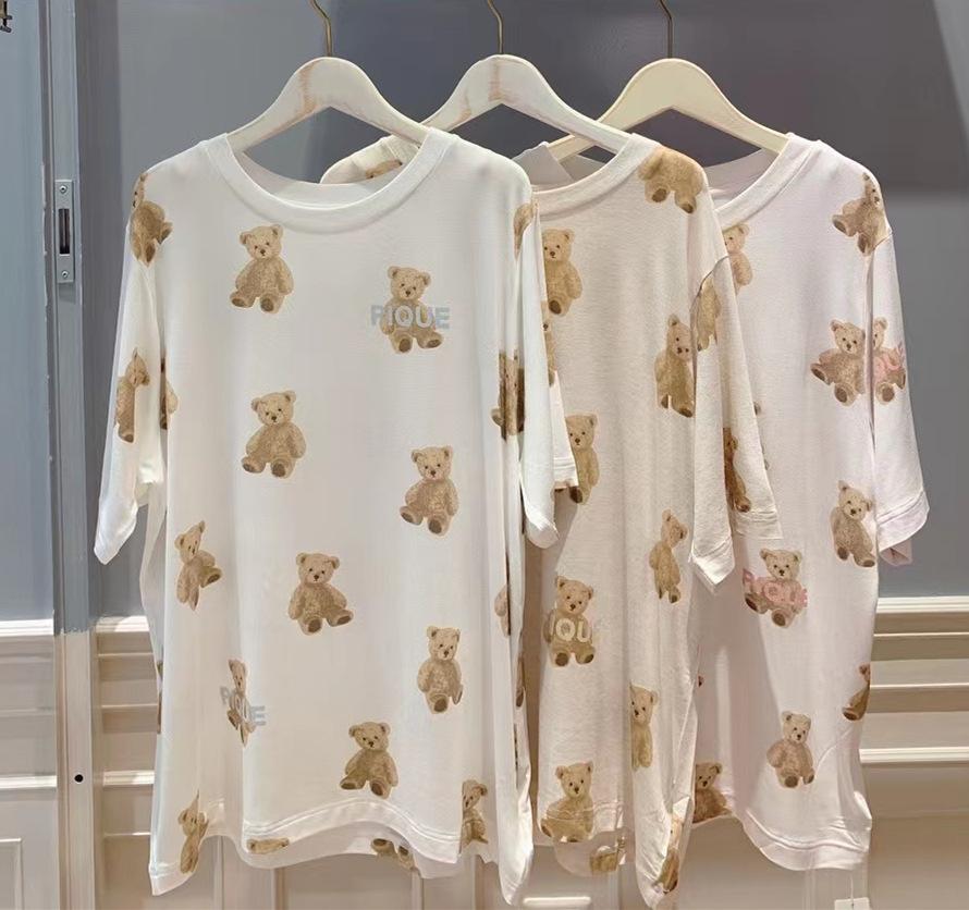 Gp Sin Marca Original Estilo Helado Suave Algodón para Mujer Lindo Estampado de Oso Ropa Exterior Manga Corta Conjunto de Pantalón Largo Ropa para Estar en Casa