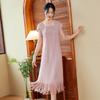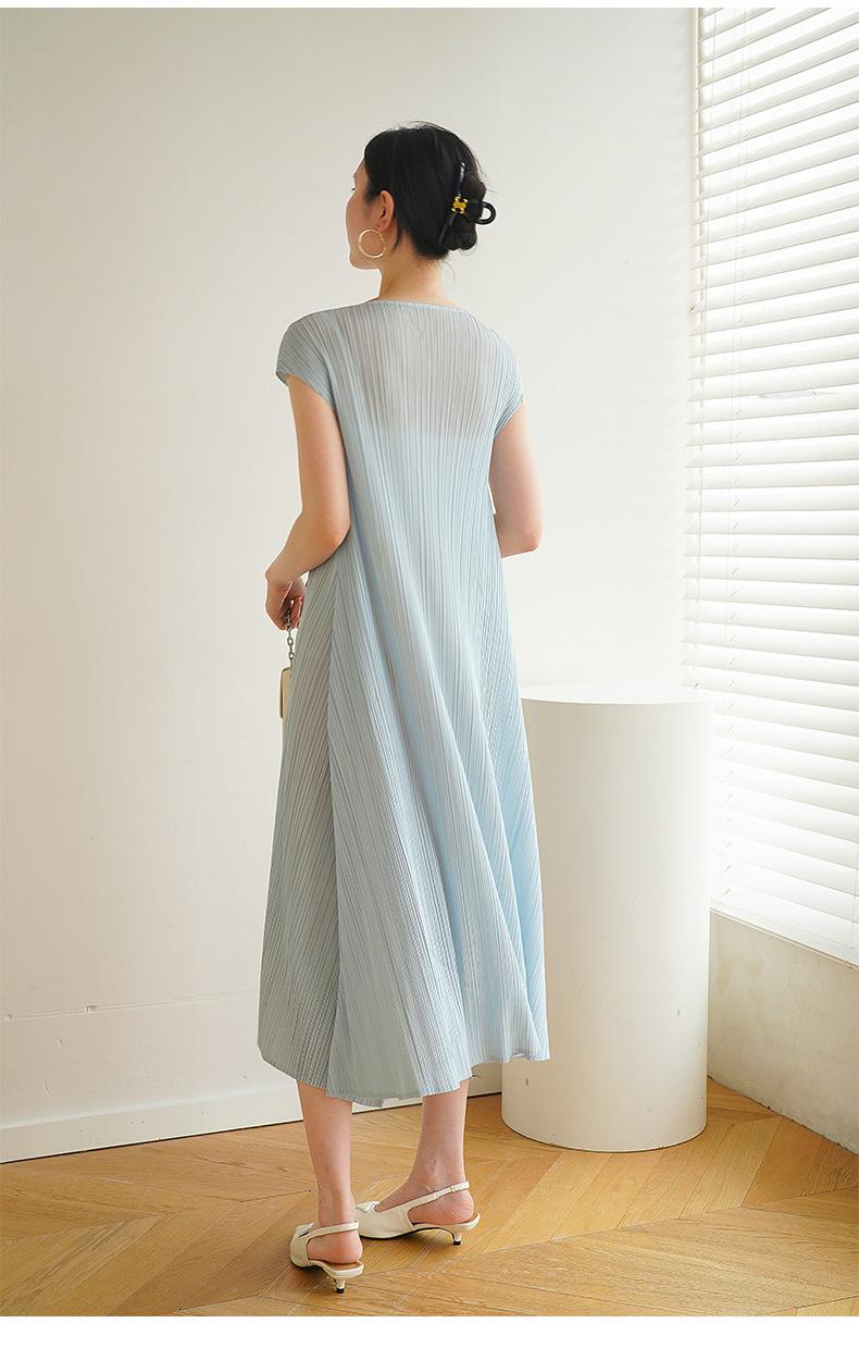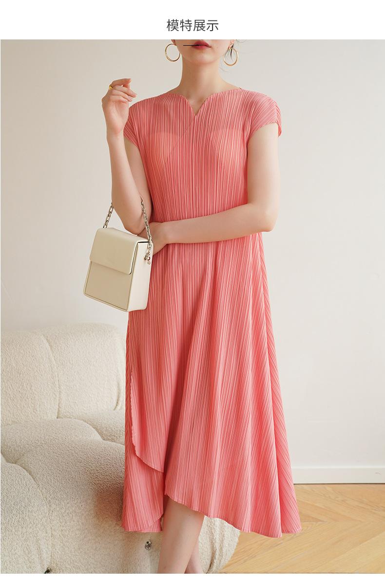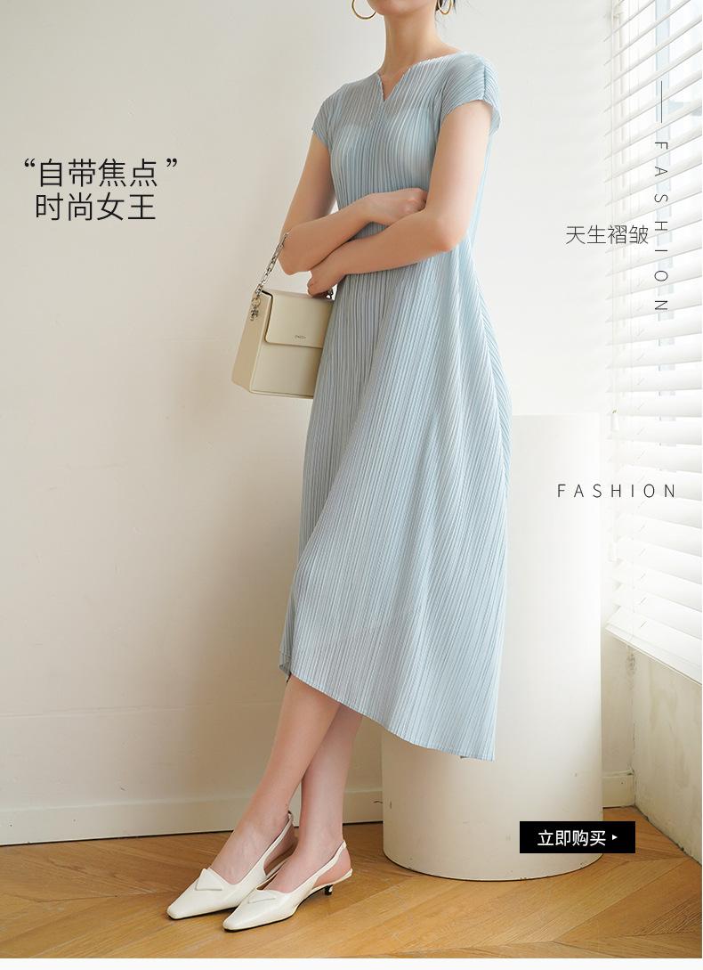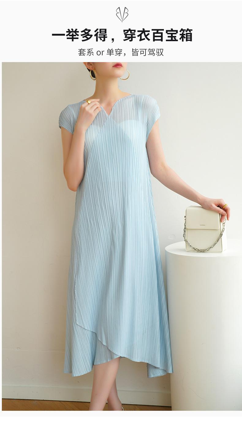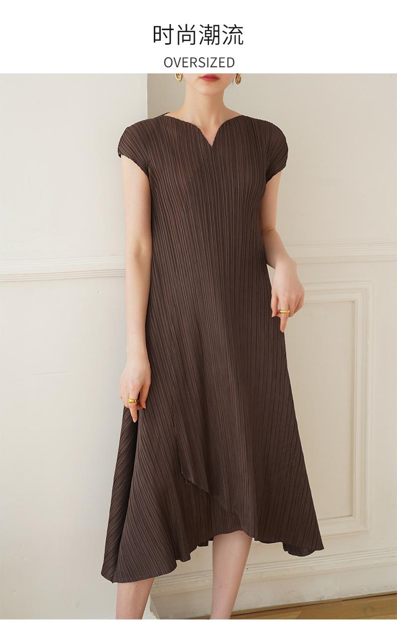 Calidad de Contador Verano Elegante Plisado Diseño Nicho Celebridad Talla Grande Dobladillo Suelto Vestido de Moda