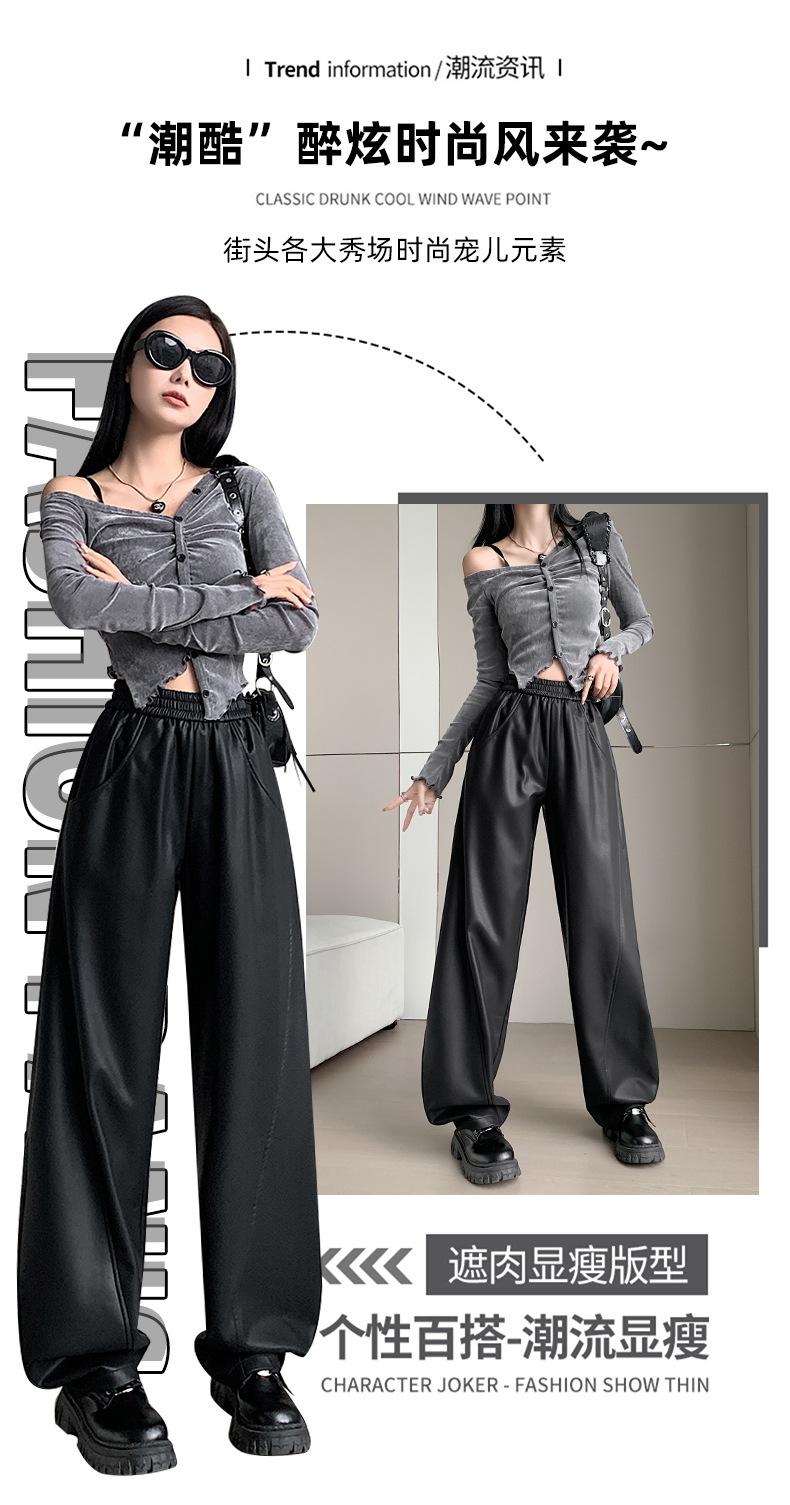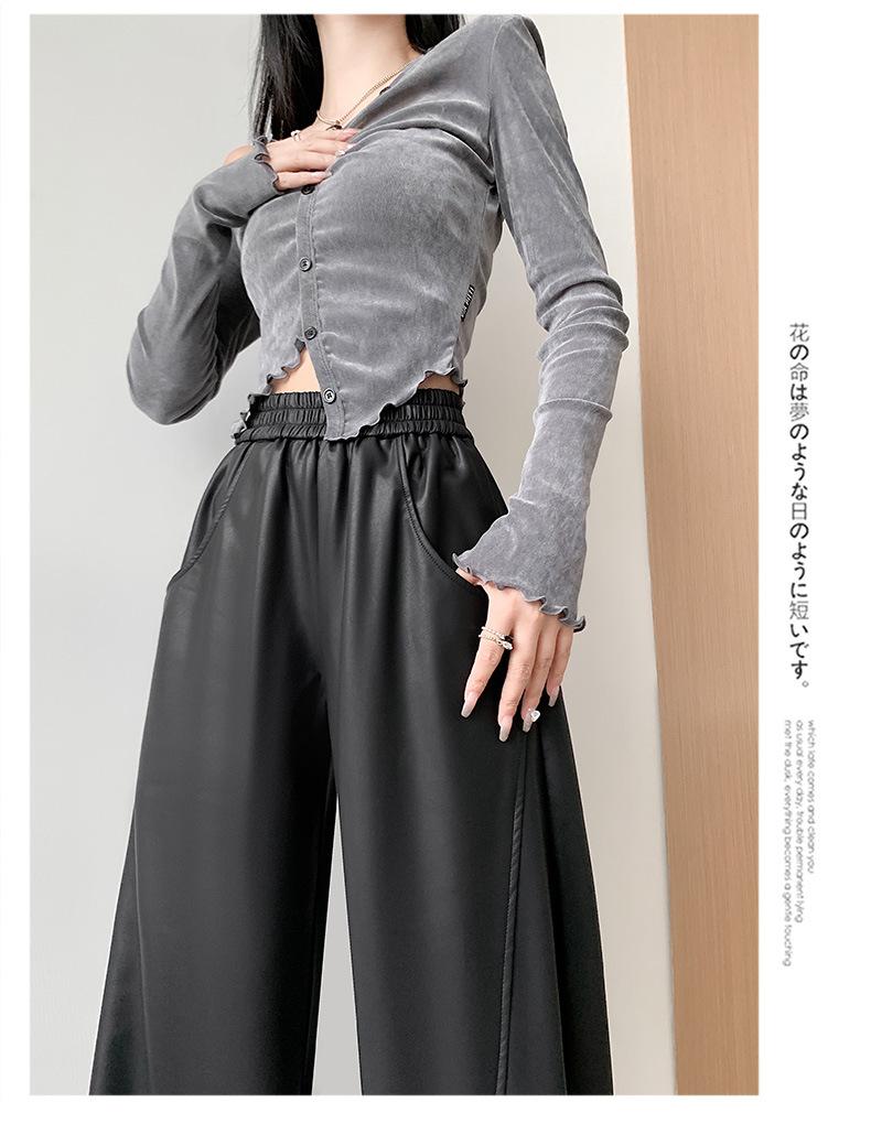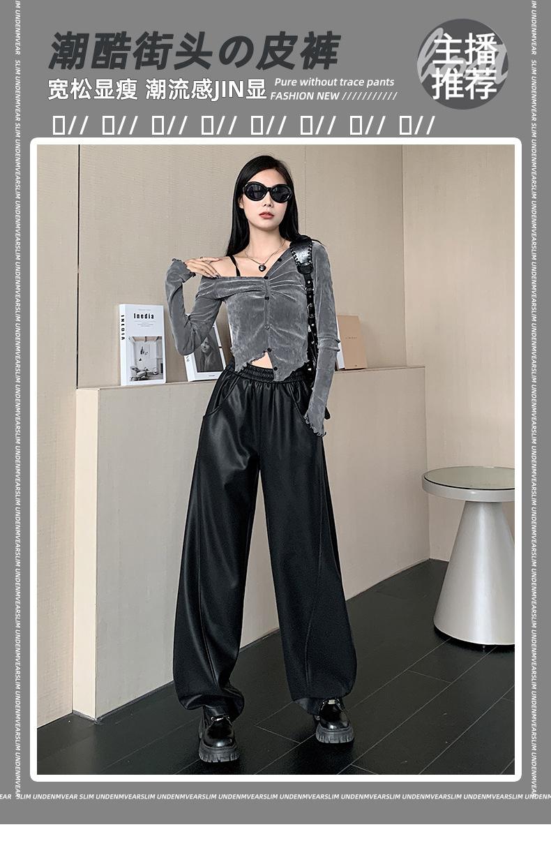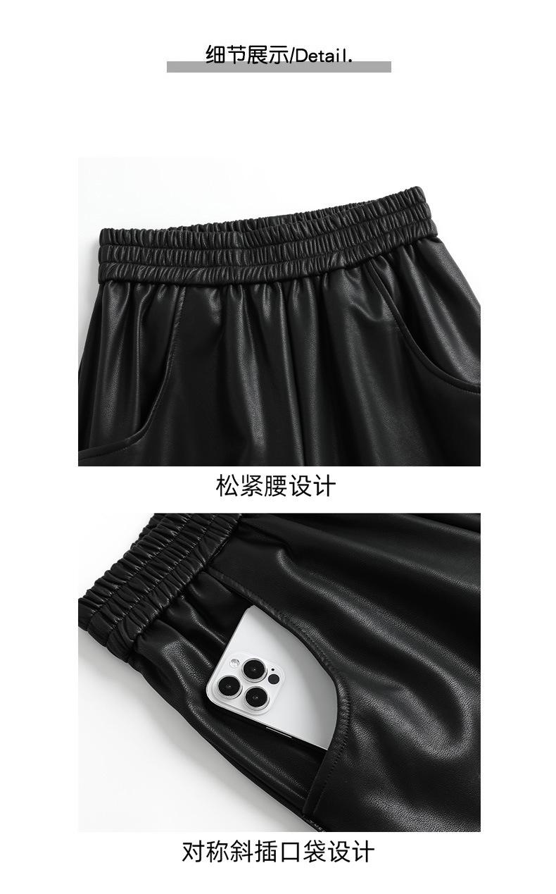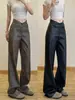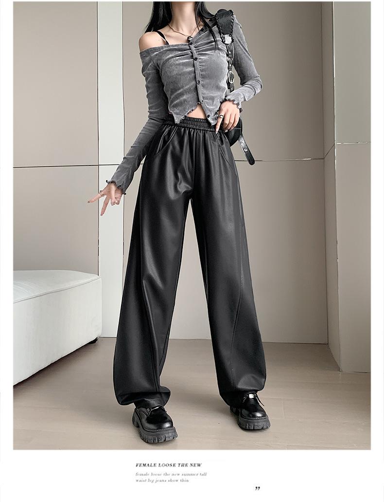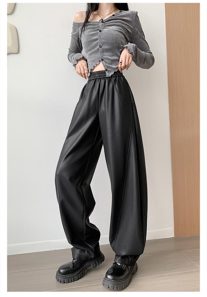 Pantalones de cuero microacampanados de cintura alta para mujer, de otoño, nuevos, de cuero PU suave, con cintura semielástica, sueltos, adelgazantes, impermeables y resistentes al viento.
