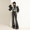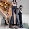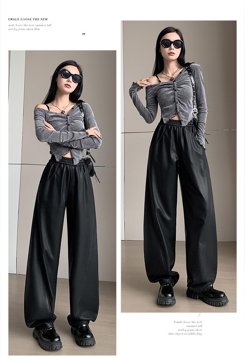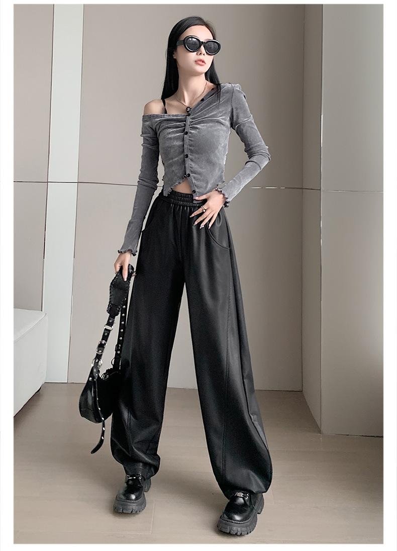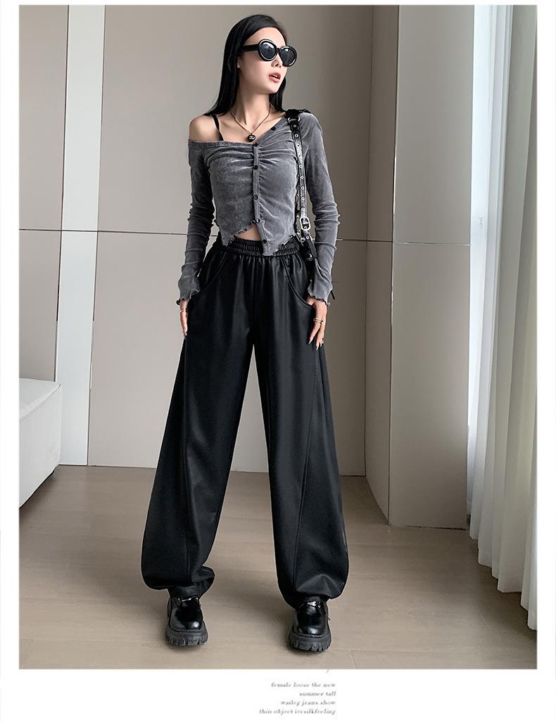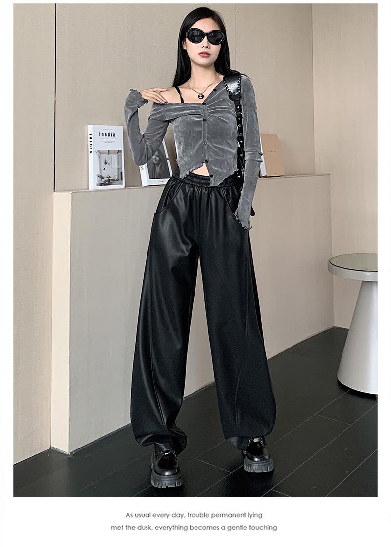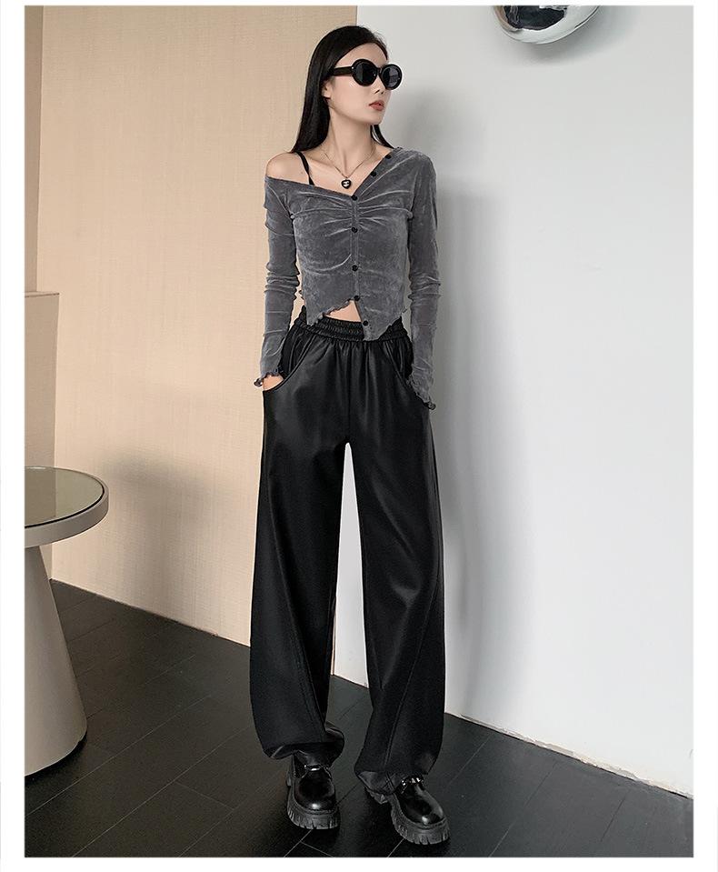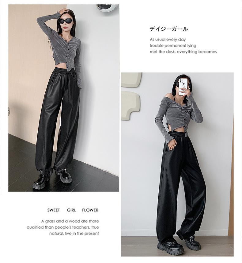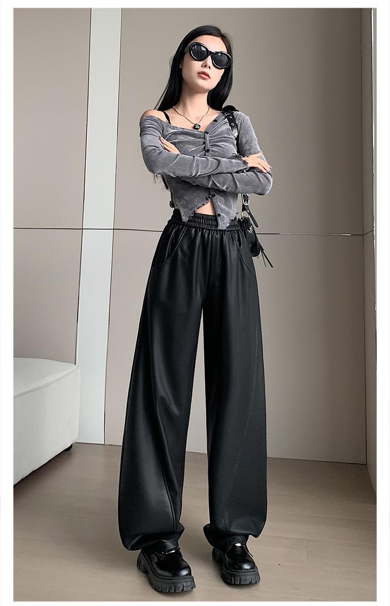 Pantalones de cuero microacampanados de cintura alta para mujer, de otoño, nuevos, de cuero PU suave, con cintura semielástica, sueltos, adelgazantes, impermeables y resistentes al viento.