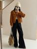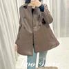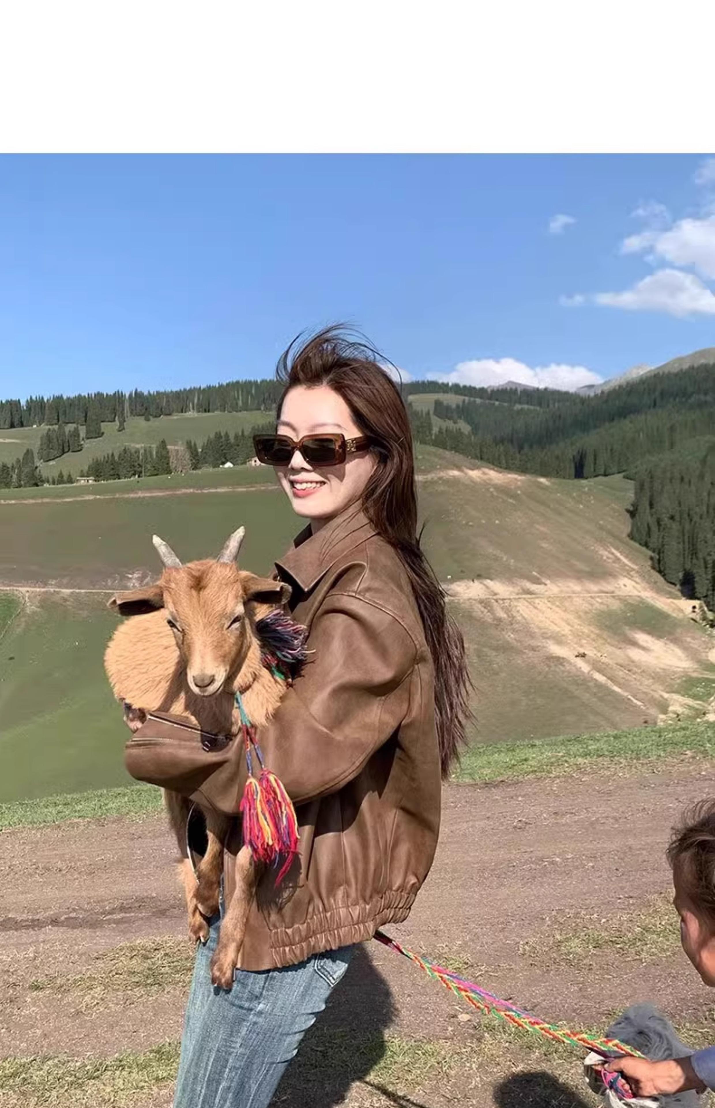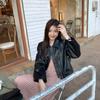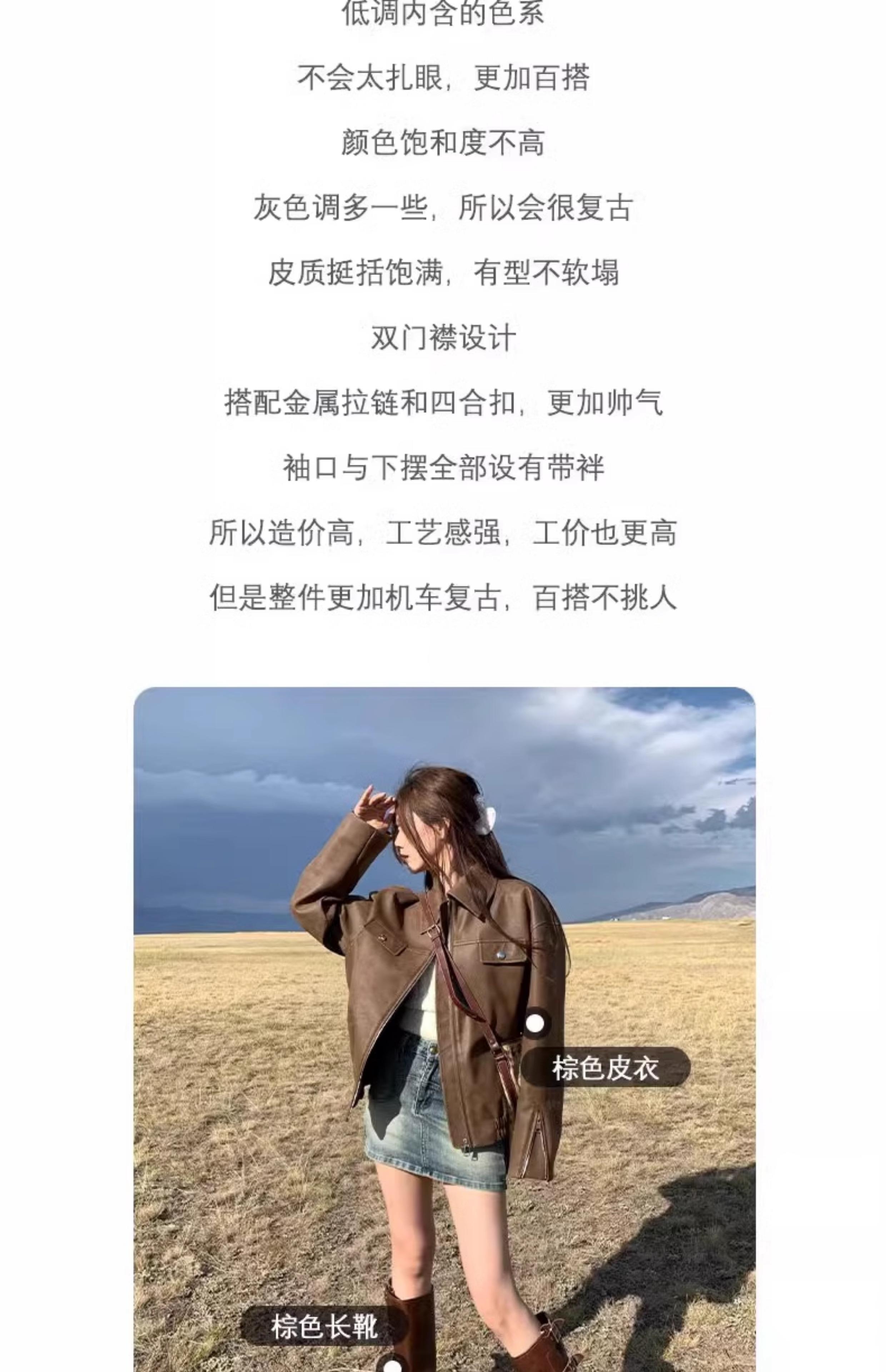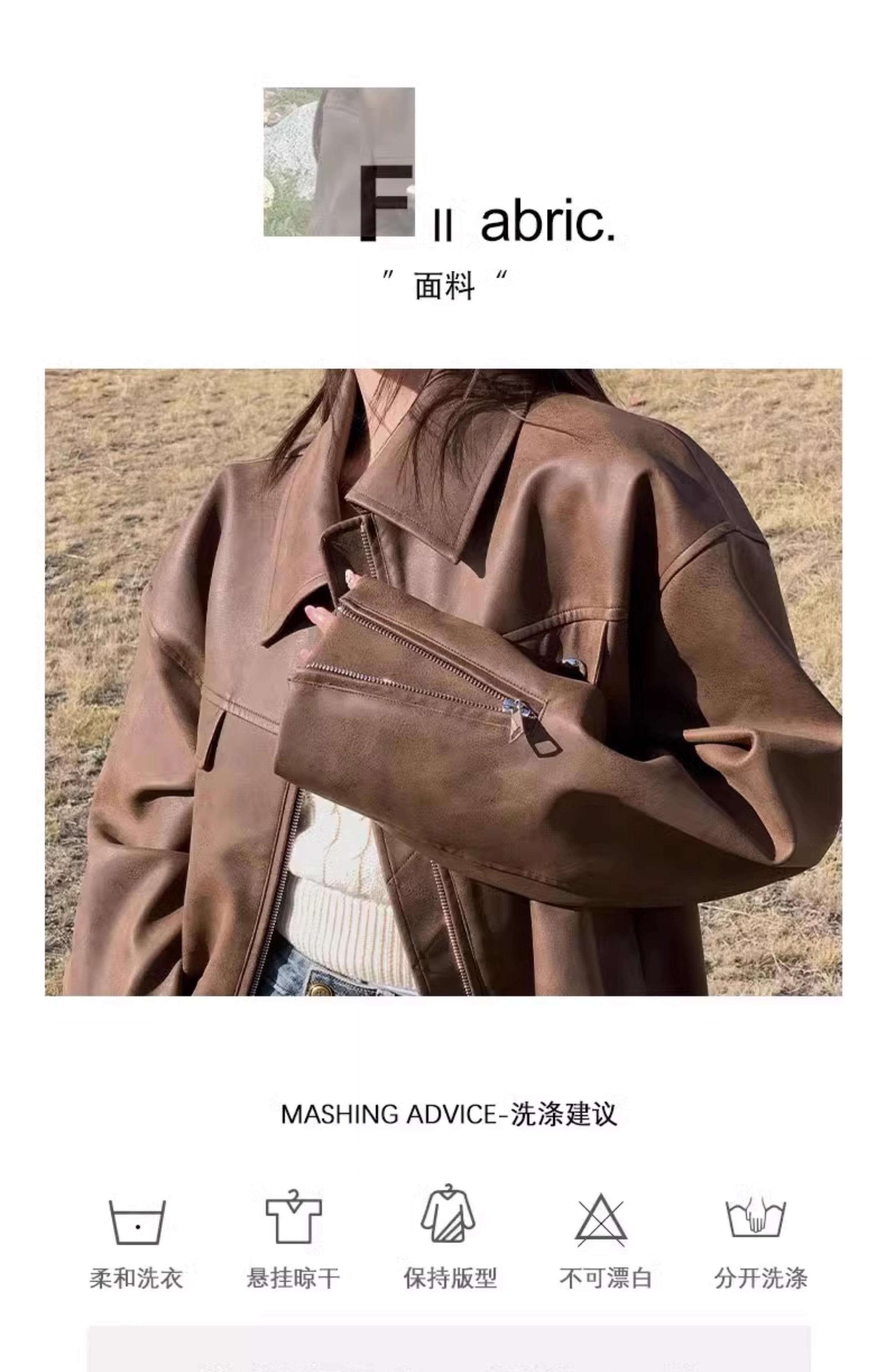 Abrigo de cuero marrón para mujer, primavera y otoño 2024, nueva chaqueta biker pequeña de cuero vintage americano Maillard