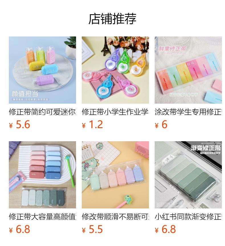 Nueva cinta correctora de dibujos animados, cinta correctora de alto valor de color, cinta correctora para estudiantes de gran capacidad, cinta correctora de cinturón continuo de 6 metros, papelería al por mayor