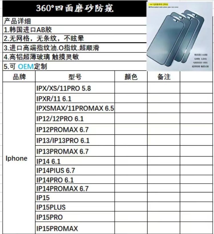 360 degree frosted anti-peep film/bare mold Apple 16plus