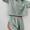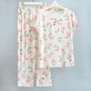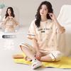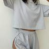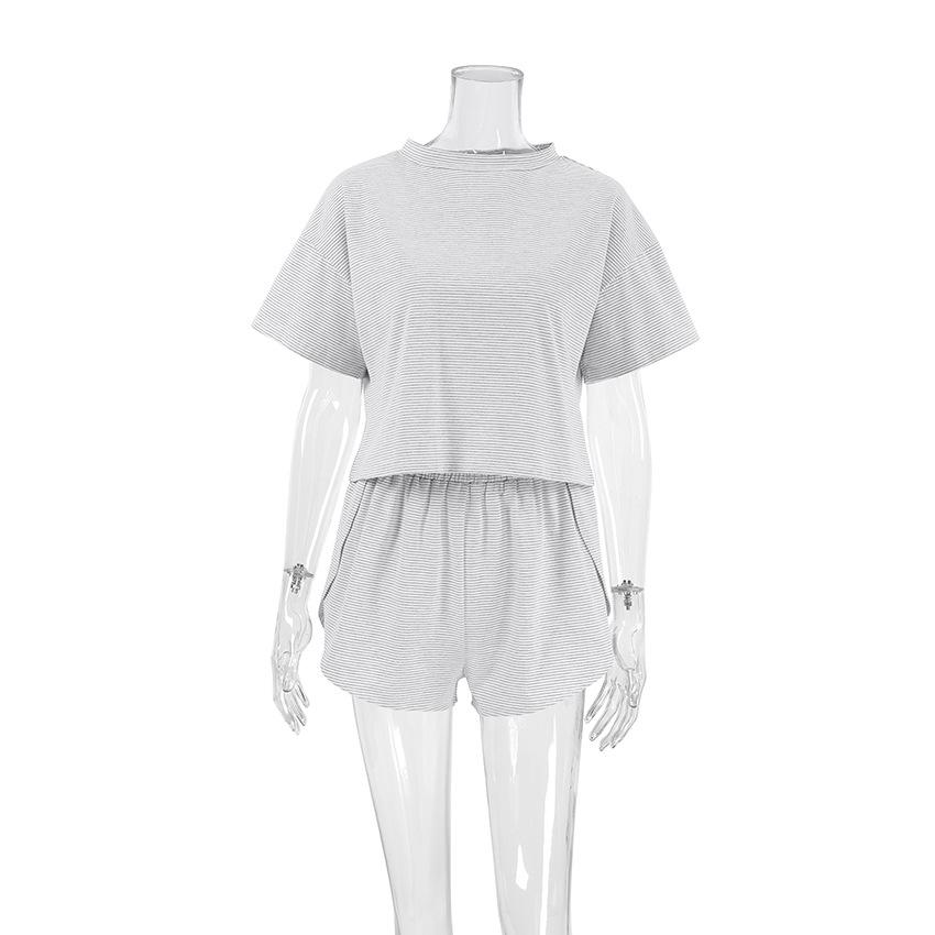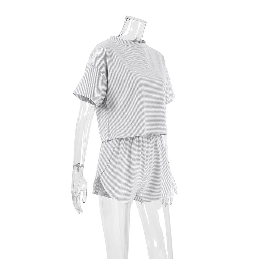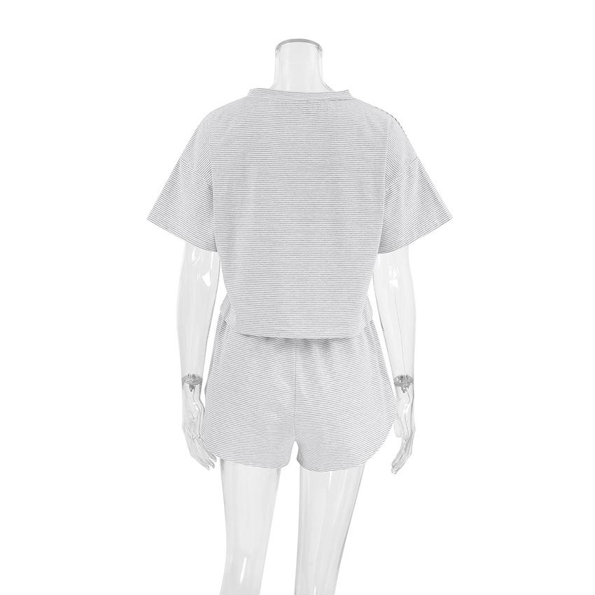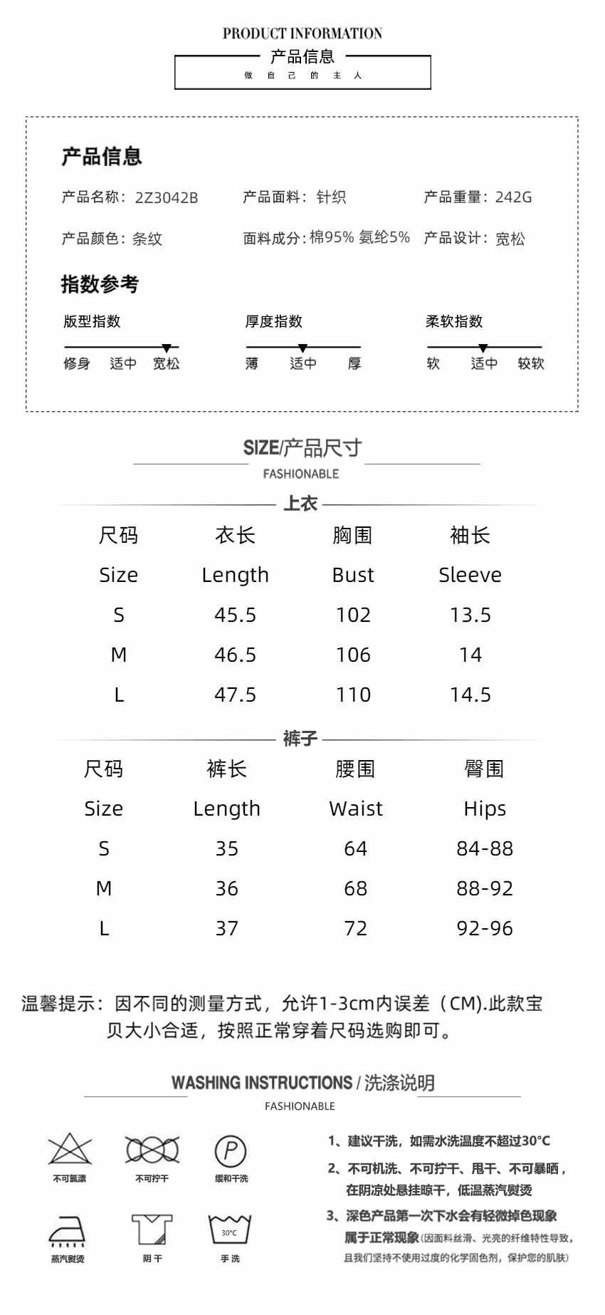 Pijama de Punto Rayado Otoñal Europeo y Americano 2024 Holgado de Manga Corta con Pantalón Corto Traje Ropa de Moda Transfronteriza Ropa de Casa para Mujer