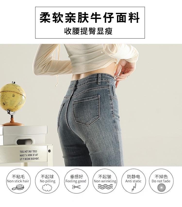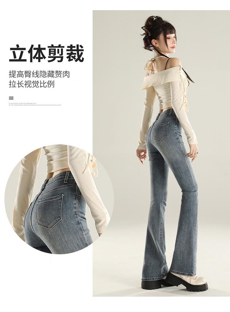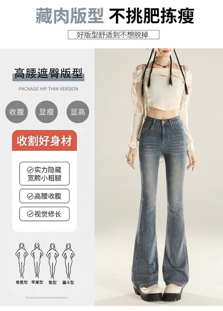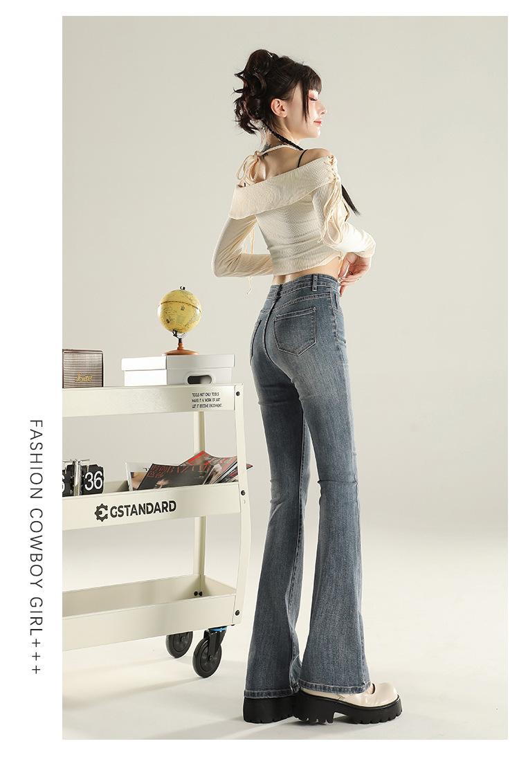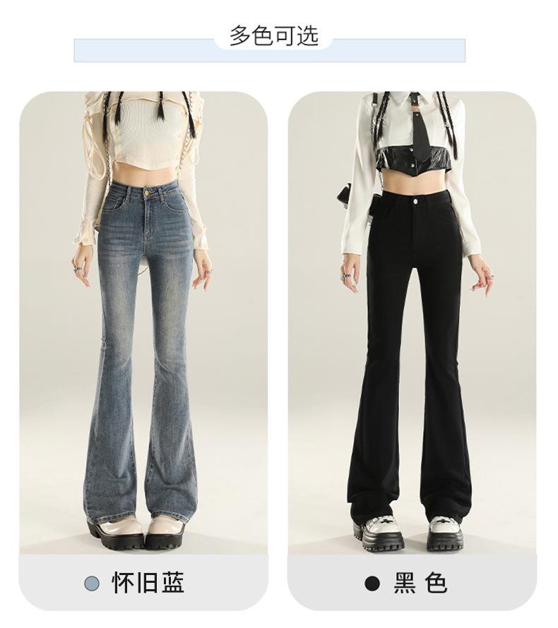 Pantalones acampanados elásticos de cintura alta para mujer, vaqueros ajustados de otoño con microblading, pantalones de otoño para mujer, pantalones de herradura para mujer de otoño