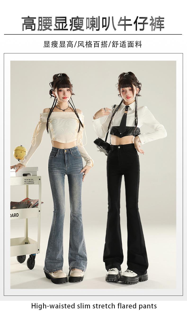 Pantalones vaqueros acampanados de cintura alta para mujer, estilo otoñal, ajustados, con diseño de herradura, elásticos, de campana, para otoño