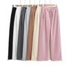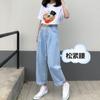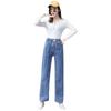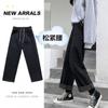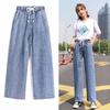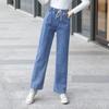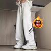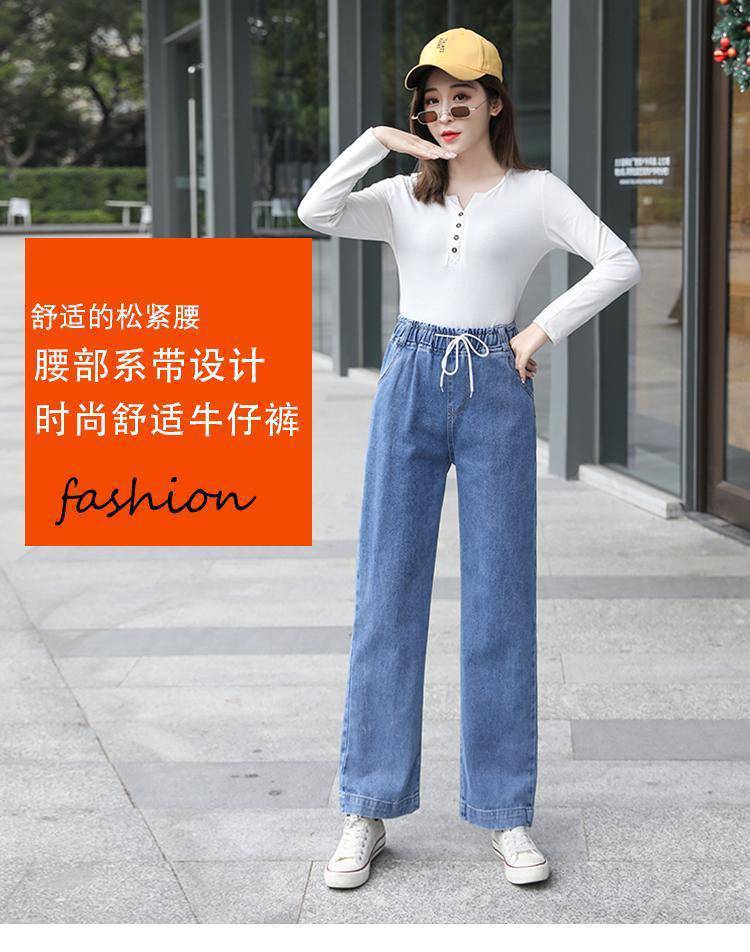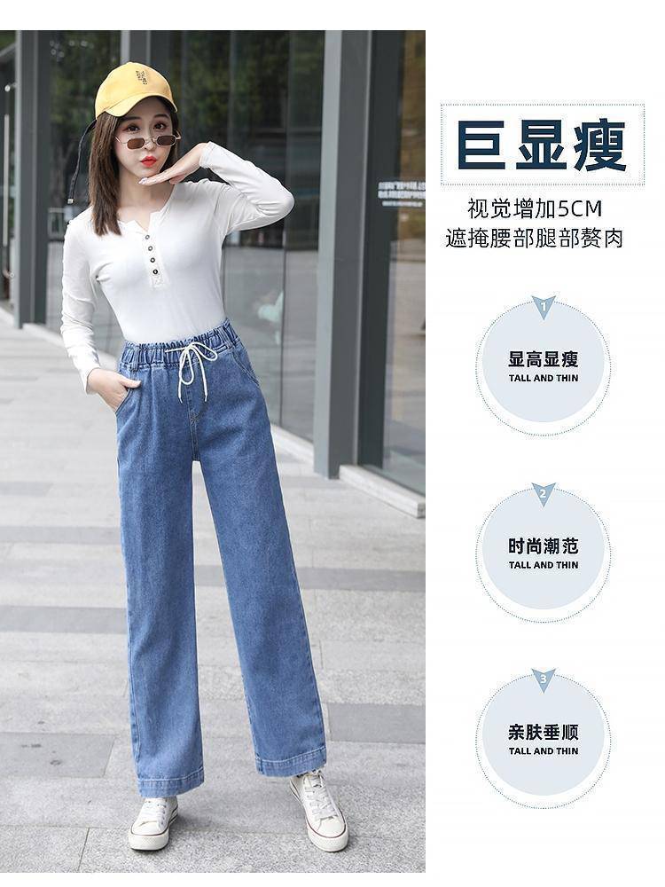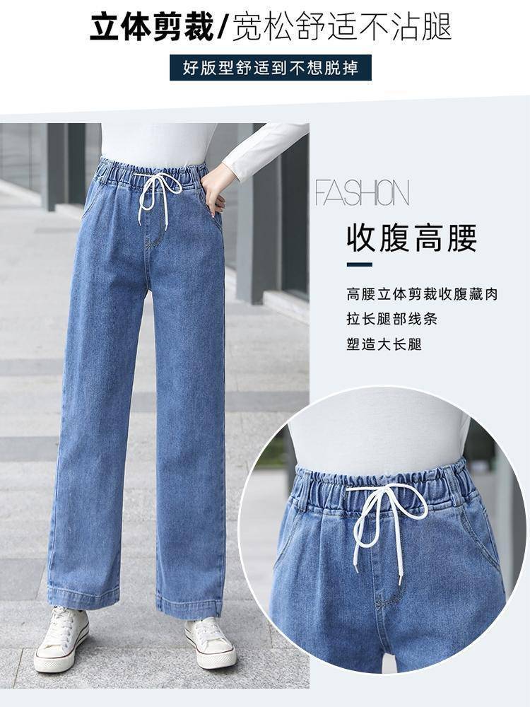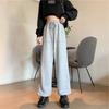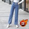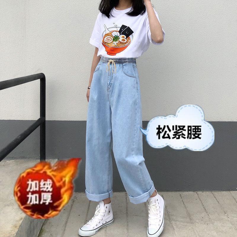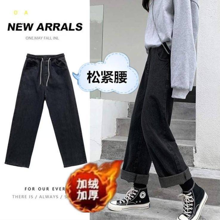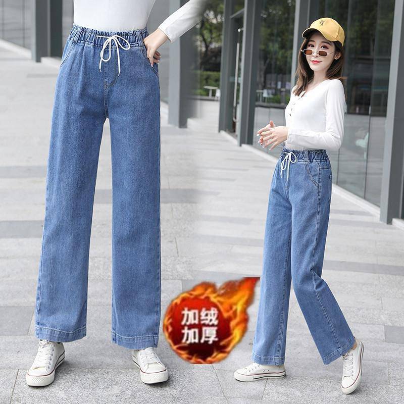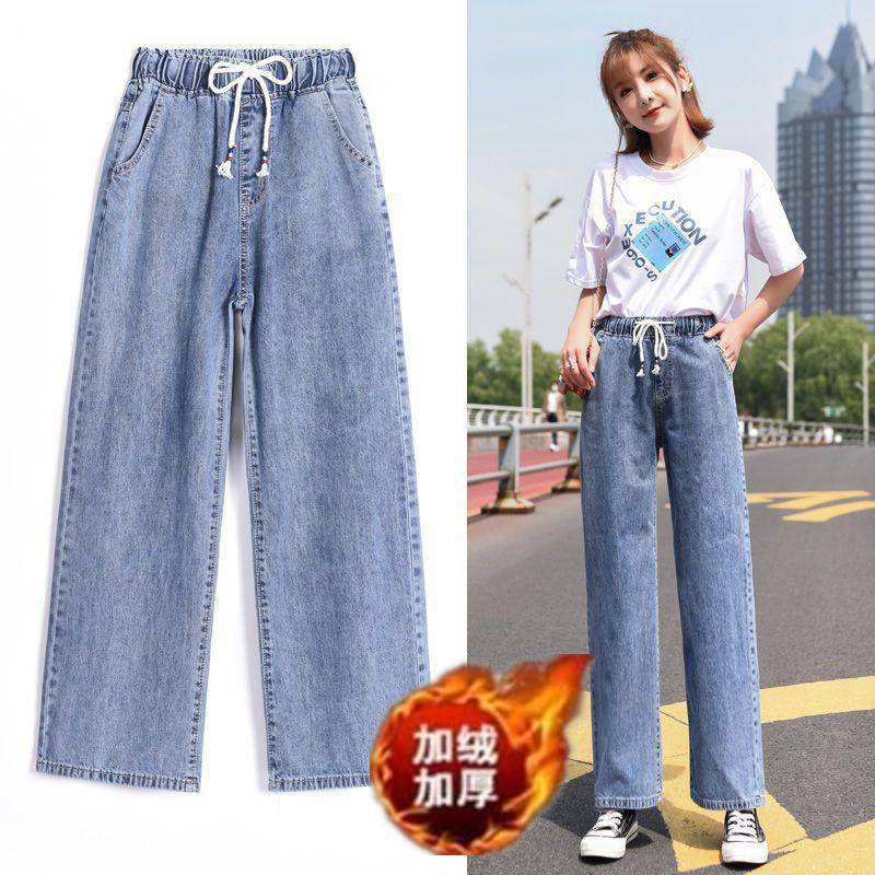 Pantalones de mezclilla gruesos con forro polar de pierna ancha para mujer otoño e invierno Nuevos pantalones rectos pequeños sueltos de cintura elástica para estudiantes de secundaria
